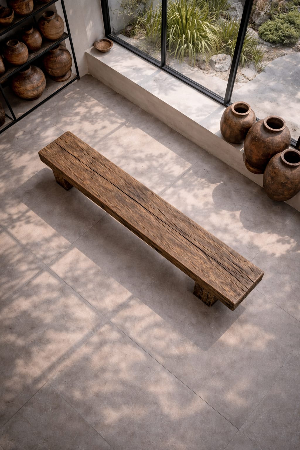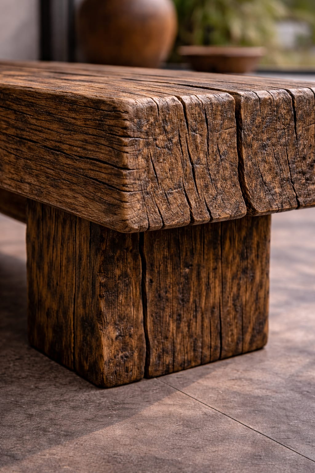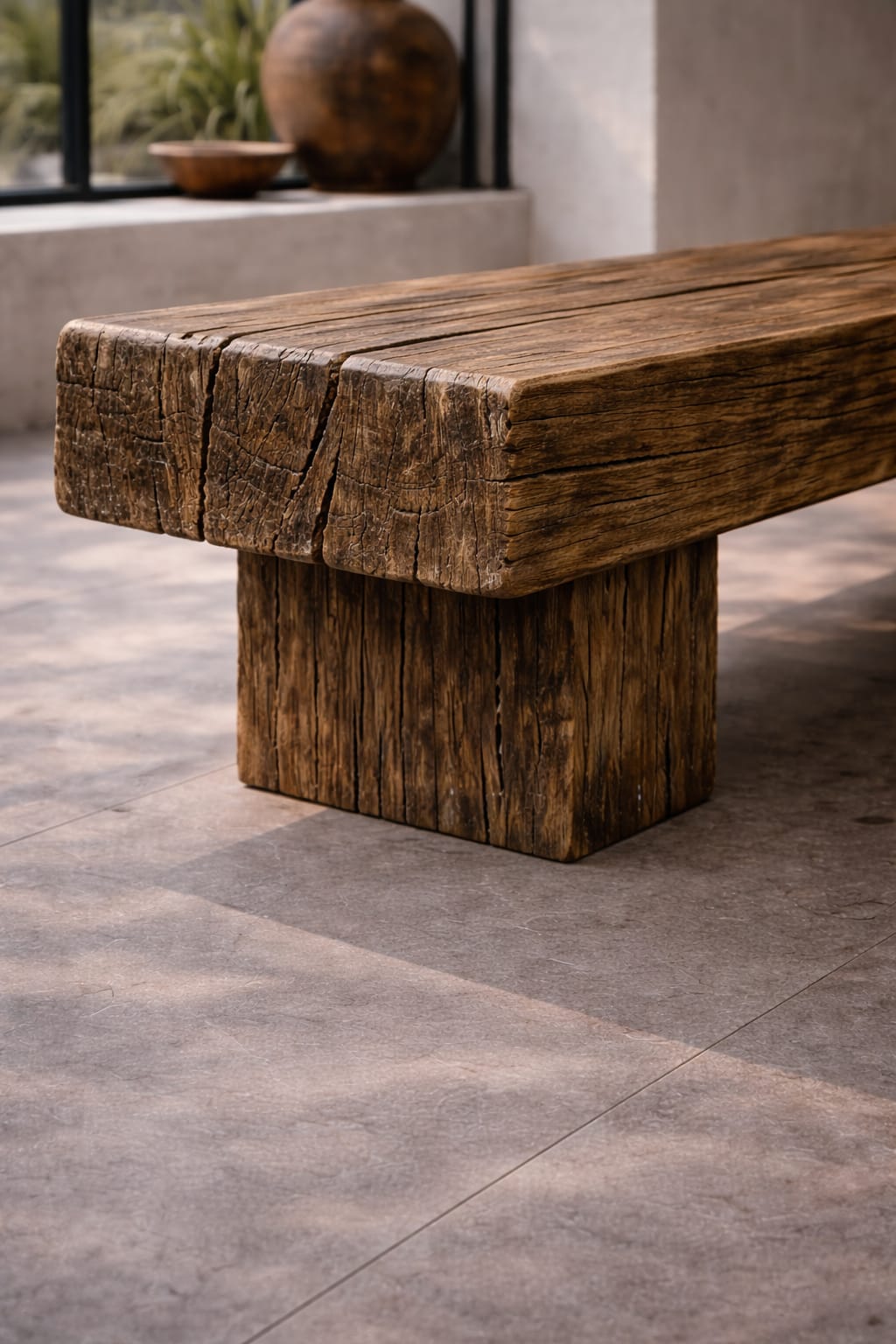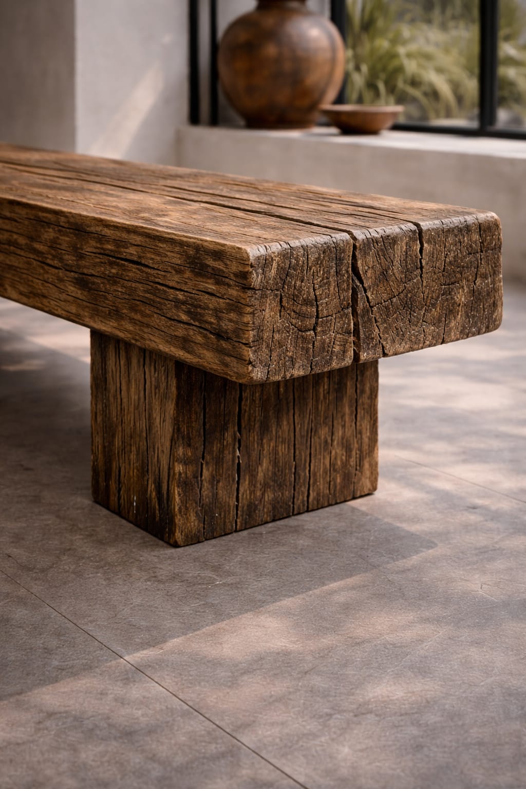 Cada banco se trabaja artesanalmente respetando grietas, vetas y texturas propias del cedro, convirtiendo cada pieza en un objeto único e irrepetible. Su presencia sólida y sus líneas puras evocan la filosofía zen del equilibrio y la belleza imperfecta.