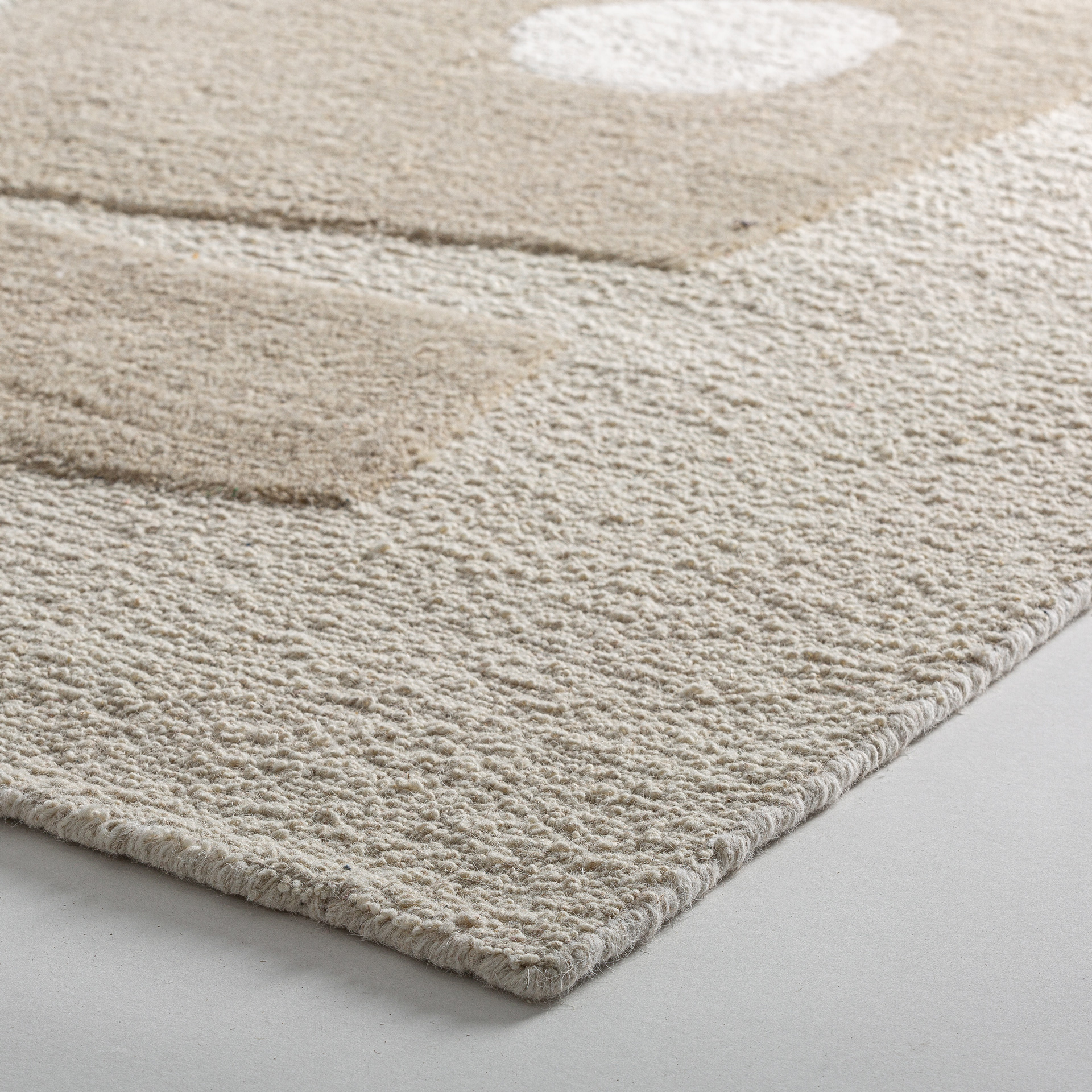 La Alfombra Sisuka juega con volúmenes y formas orgánicas en una paleta neutra y actual. Realizada en lana blanco roto con algodón en beige, aporta serenidad y armonía, ideal para espacios que buscan una estética depurada con un toque sofisticado.