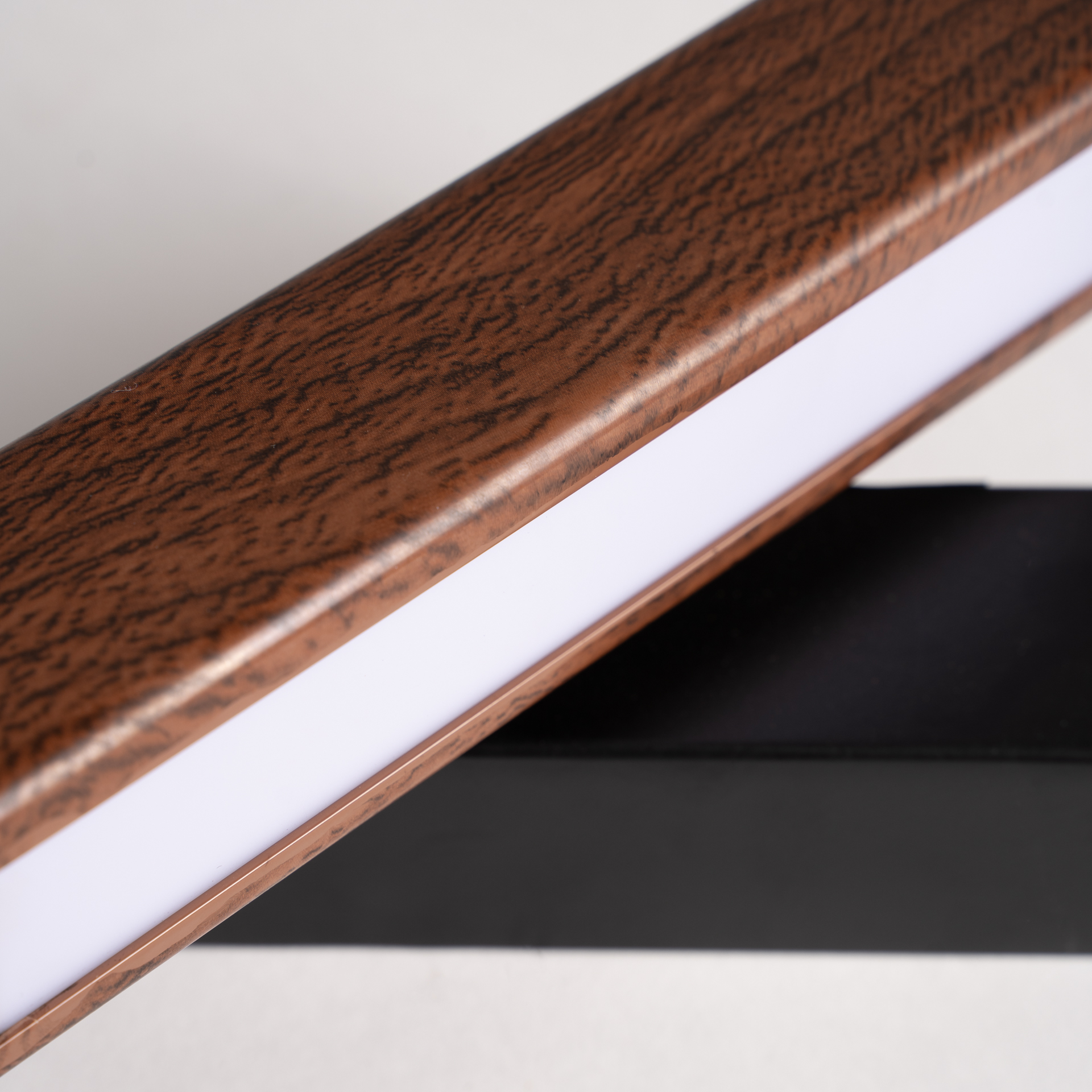 Aplique Ariel de estilo contemporáneo, fabricado en aluminio en color marrón, combinado con acero en color negro y acrílico en color blanco roto.