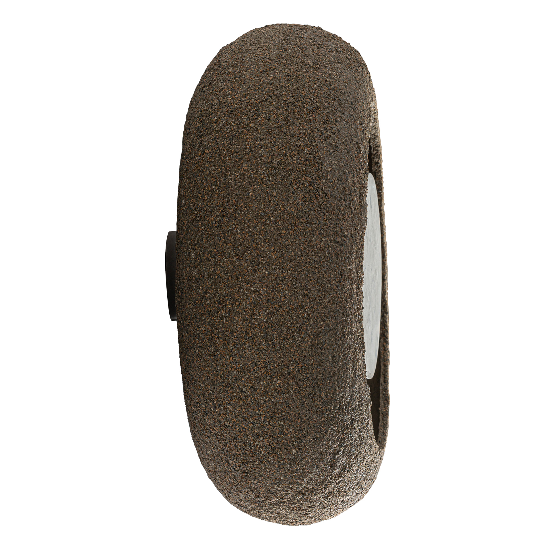 El aplique Wisha destaca por su presencia escultórica. Cemento gris y piedra beige aportan textura y solidez visual.