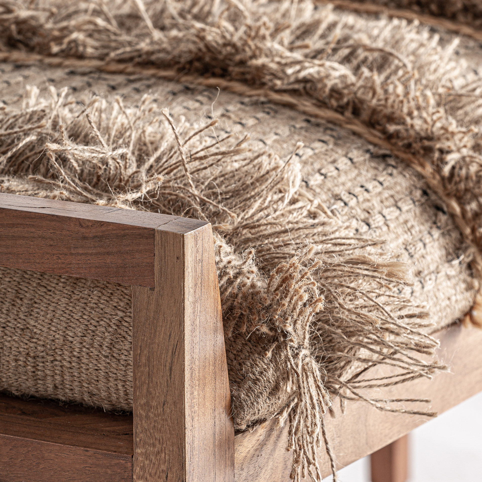 Material, color y acabados MADERA DE MANGO en color MARRÓN CLARO,ALGODÓN en color TONOS EN MARRÓN,YUTE en color BEIGE