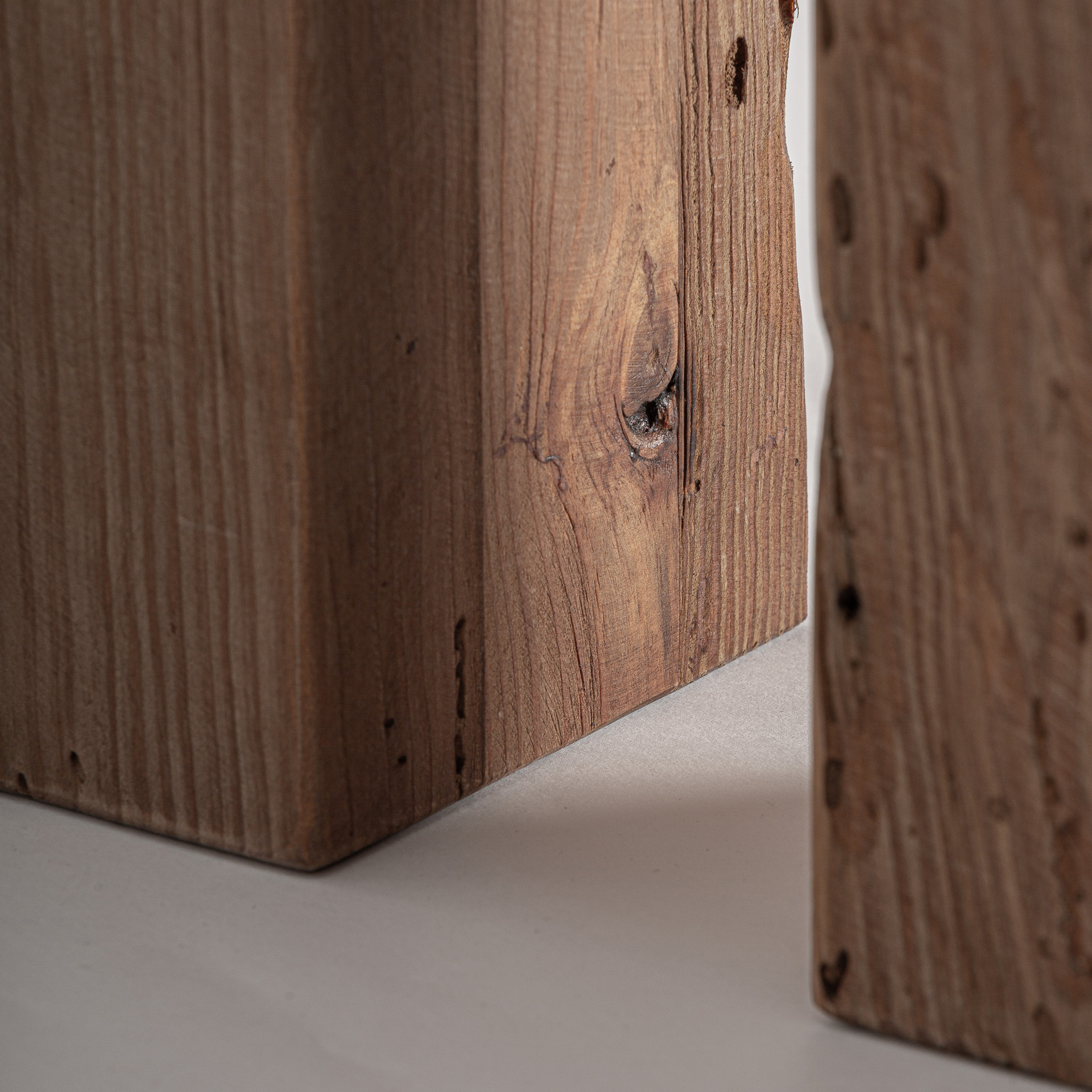 COMPOSICIÓN MATERIAL Madera de pino reciclado en color marrón Fabricación artesanal. Entendemos las variaciones de tonalidad o ciertas imperfecciones (grietas, nudos, marcas) como un valor añadido que la convierten en pieza única.