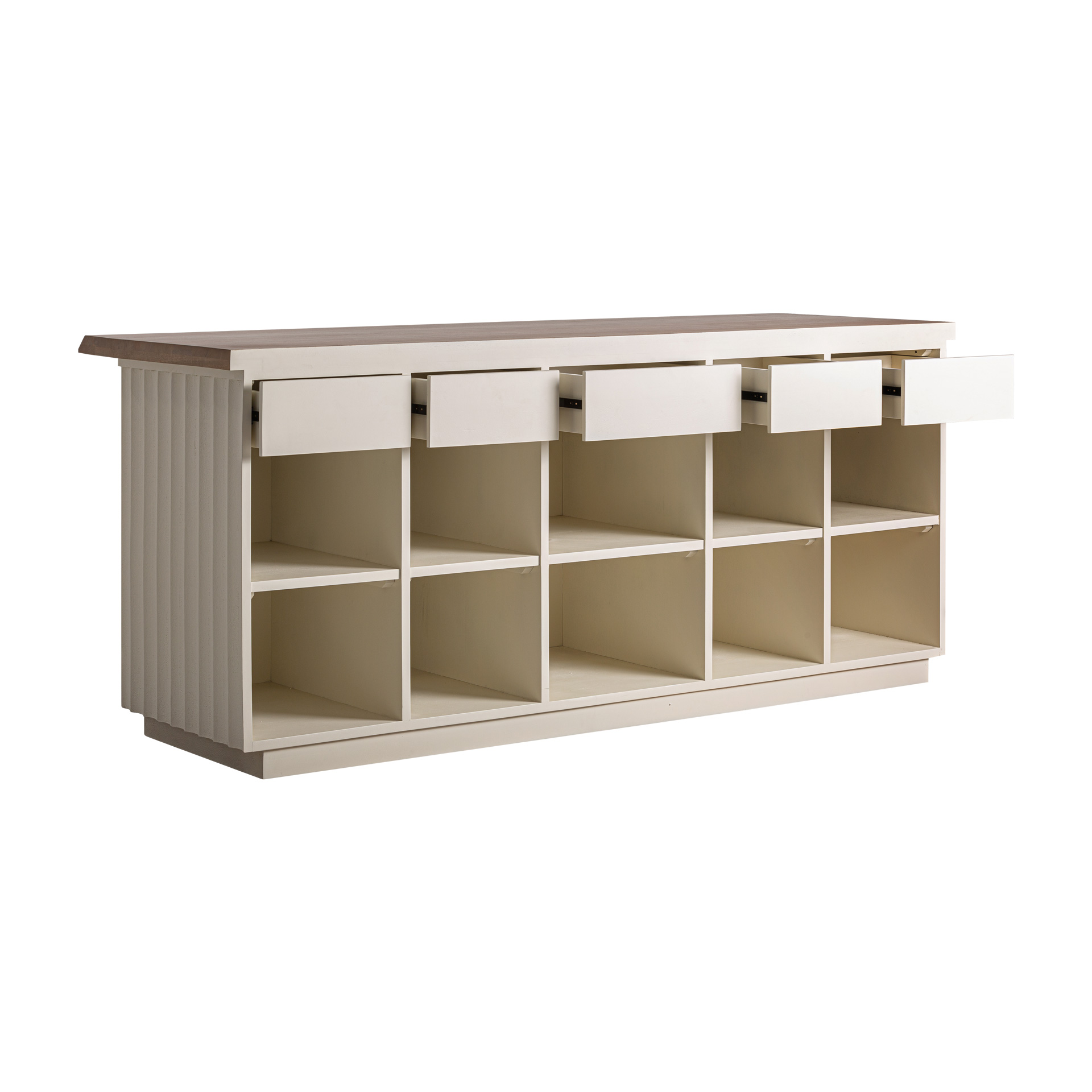 La Barra de Bar Guipy combina estética contemporánea y materiales naturales. Fabricada en madera de mango blanco y rematada con una tapa de acacia en tono marrón, aporta carácter, textura y una presencia cálida perfecta para proyectos de hostelería, retail o espacios residenciales con personalidad.