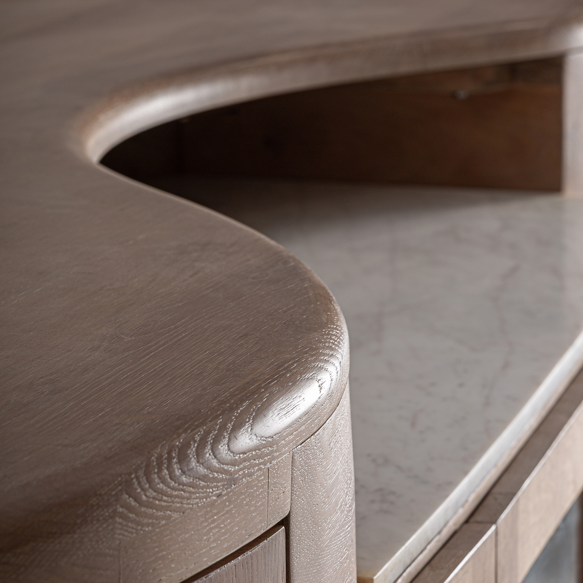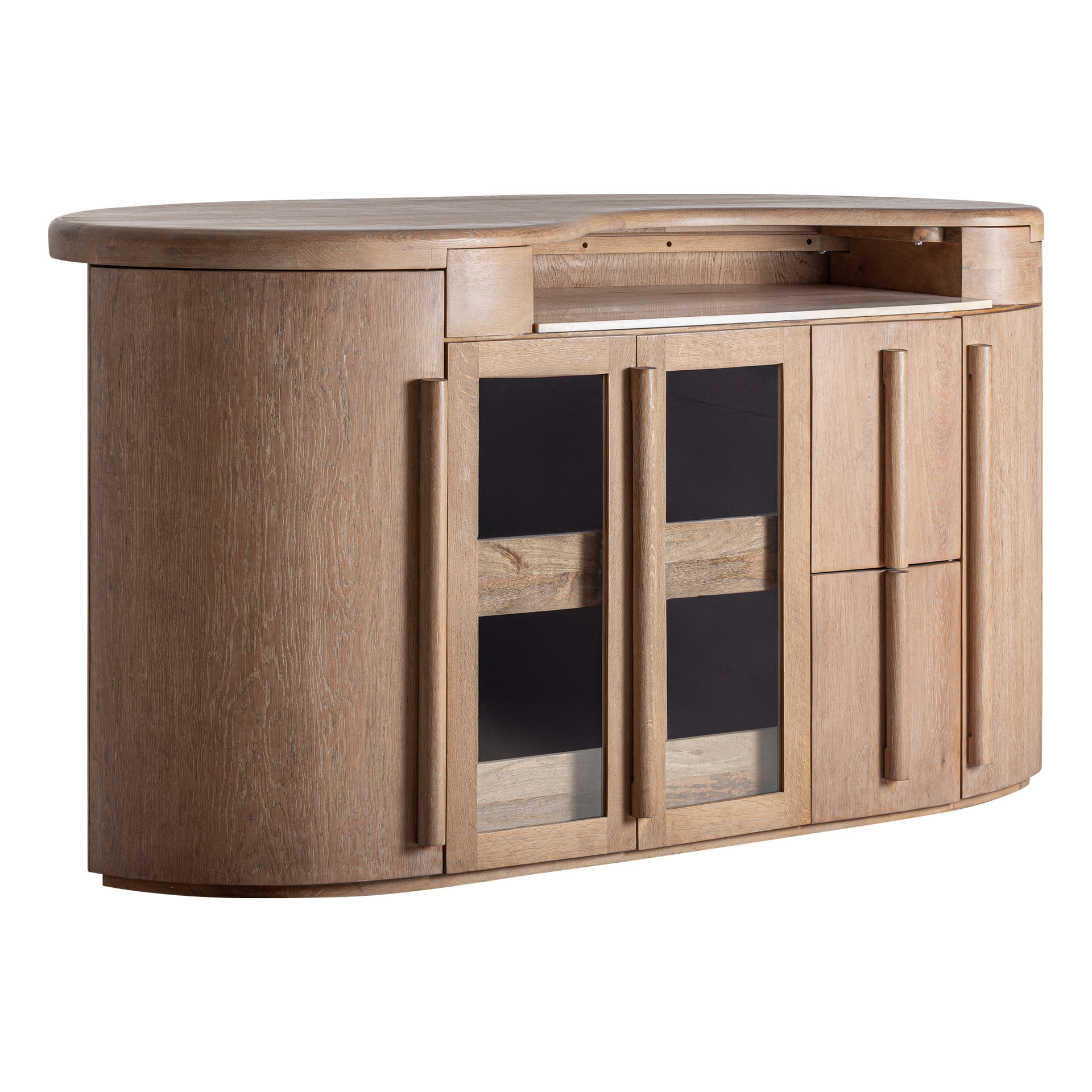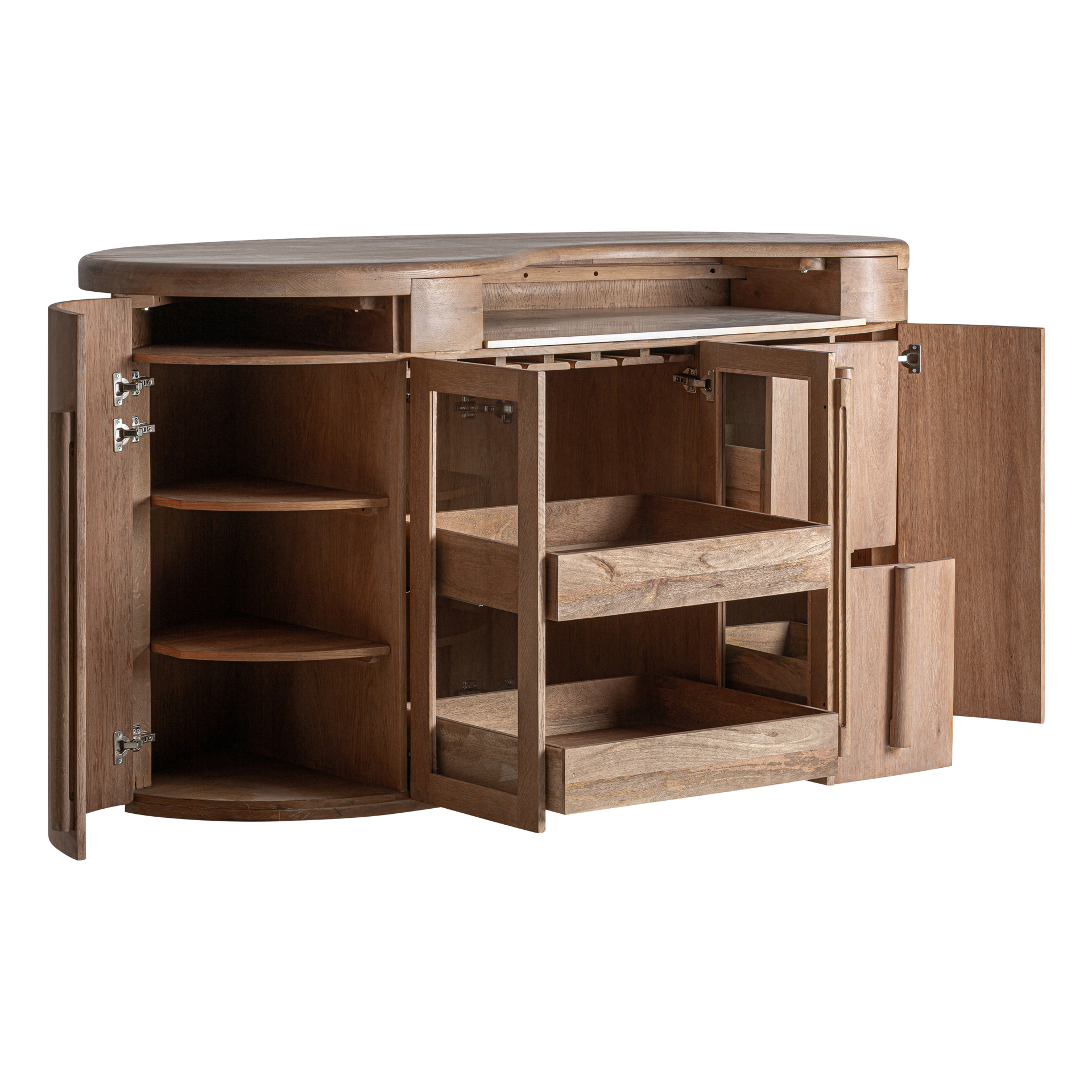 DIMENSIONES Medidas (largo x ancho x alto): 202 x 90 x 109 cm. Peso: 212,3 kg. Número de cajones: 4 Medida interior de los cajones: (2) 32X45X39 (2) 87,5X54X10 cm. Número de puertas: 4 Medida interior del hueco: (1) 40X56X91,5 (1 )26X46X85 cm. Número de estantes: 5 Tipo de estantes: fijo Altura entre estantes: (6) 27,5 (1) 11,5 cm. Peso soportado balda: 10 kg. Espesor del tablero: 3 cm. Tipo de patas: Fija Partes desmontables: tablero Peso soportado: 80 kg. – Botellero de 6 guías a una distancia de 11 cm – Cajones con guías metálicas recalados en la madera – Mármol blanco brillo veteado de 1,5 cm Incluye: herrajes. Producto desmontable.
