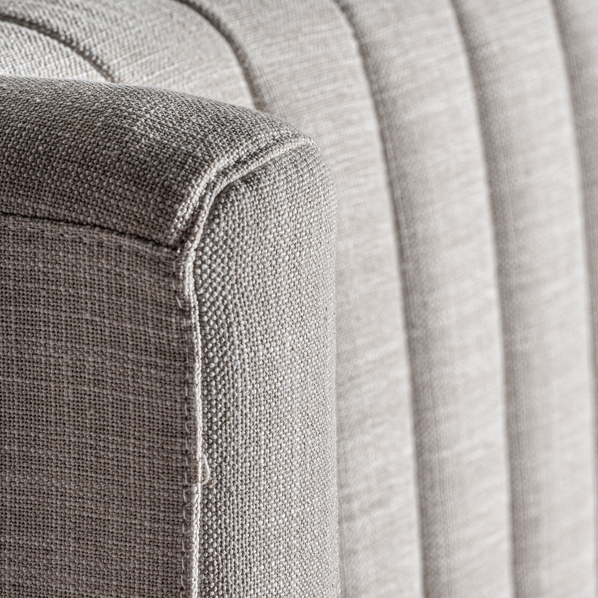 La cama Aunac, tapizada en poliéster gris y con estructura de madera de pino, ofrece una estética sobria y contemporánea. Su diseño bajo y líneas limpias la convierten en el centro de descanso perfecto. Una pieza con presencia y equilibrio.