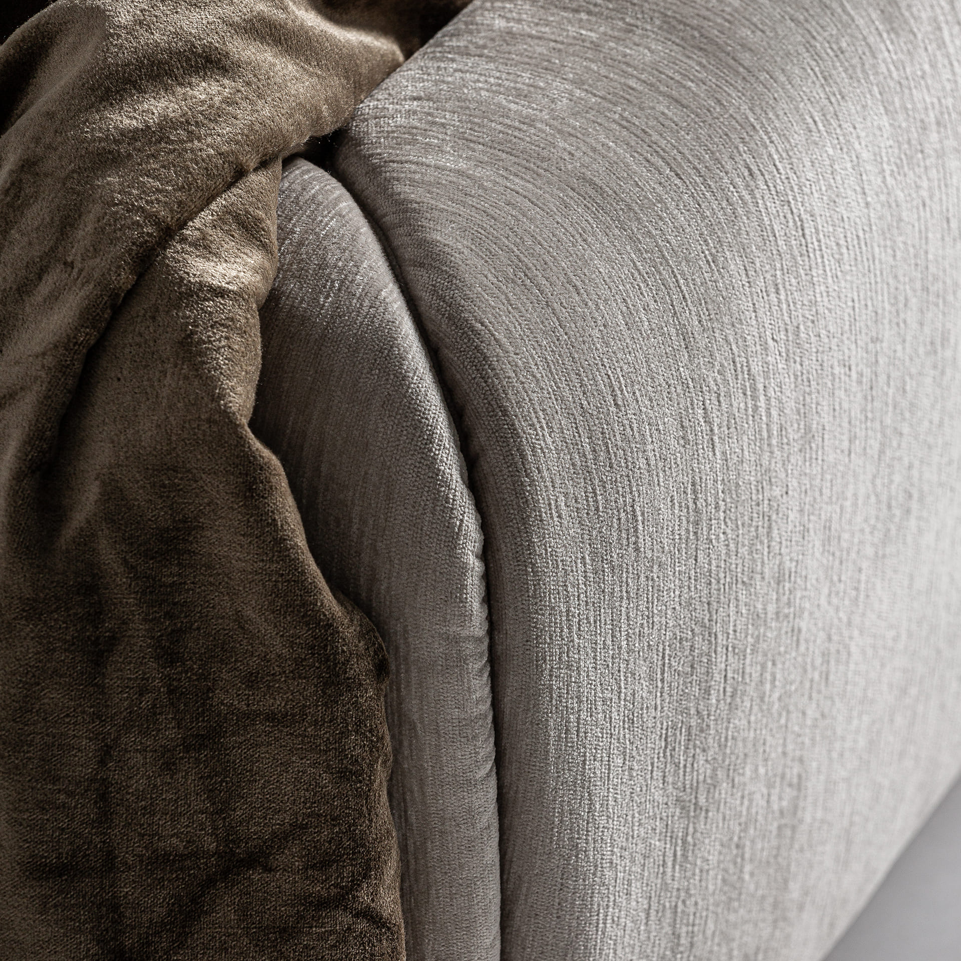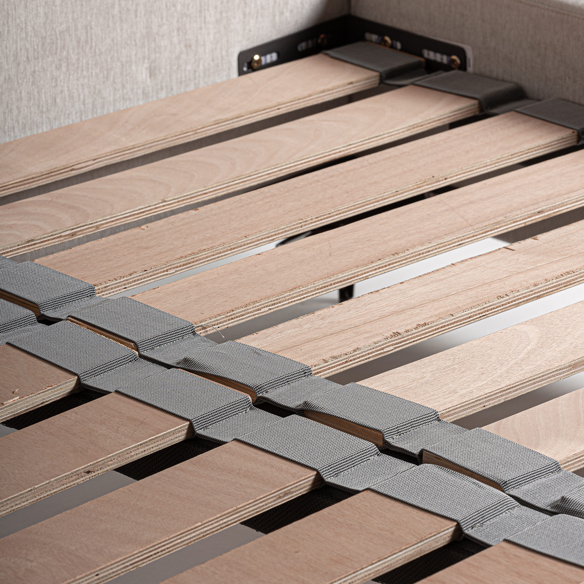 La cama Bend, tapizada en poliéster blanco y combinada con madera de pino y espuma, destaca por su diseño provenzal y su estética luminosa. Su estructura desmontable y su textura suave la convierten en una pieza funcional para dormitorios serenos.