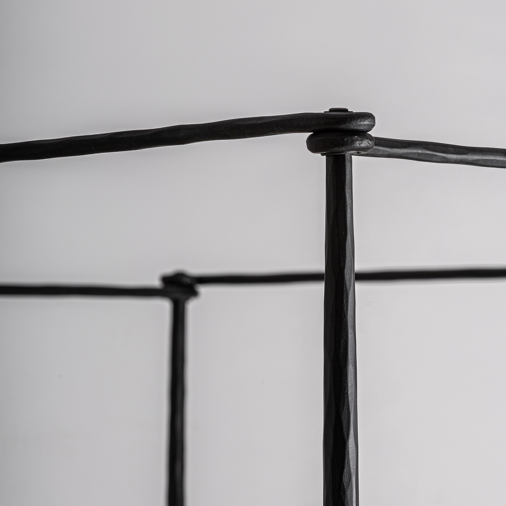 Cama, fabricado en hierro en color negro, combinado con algodón en color beige.
