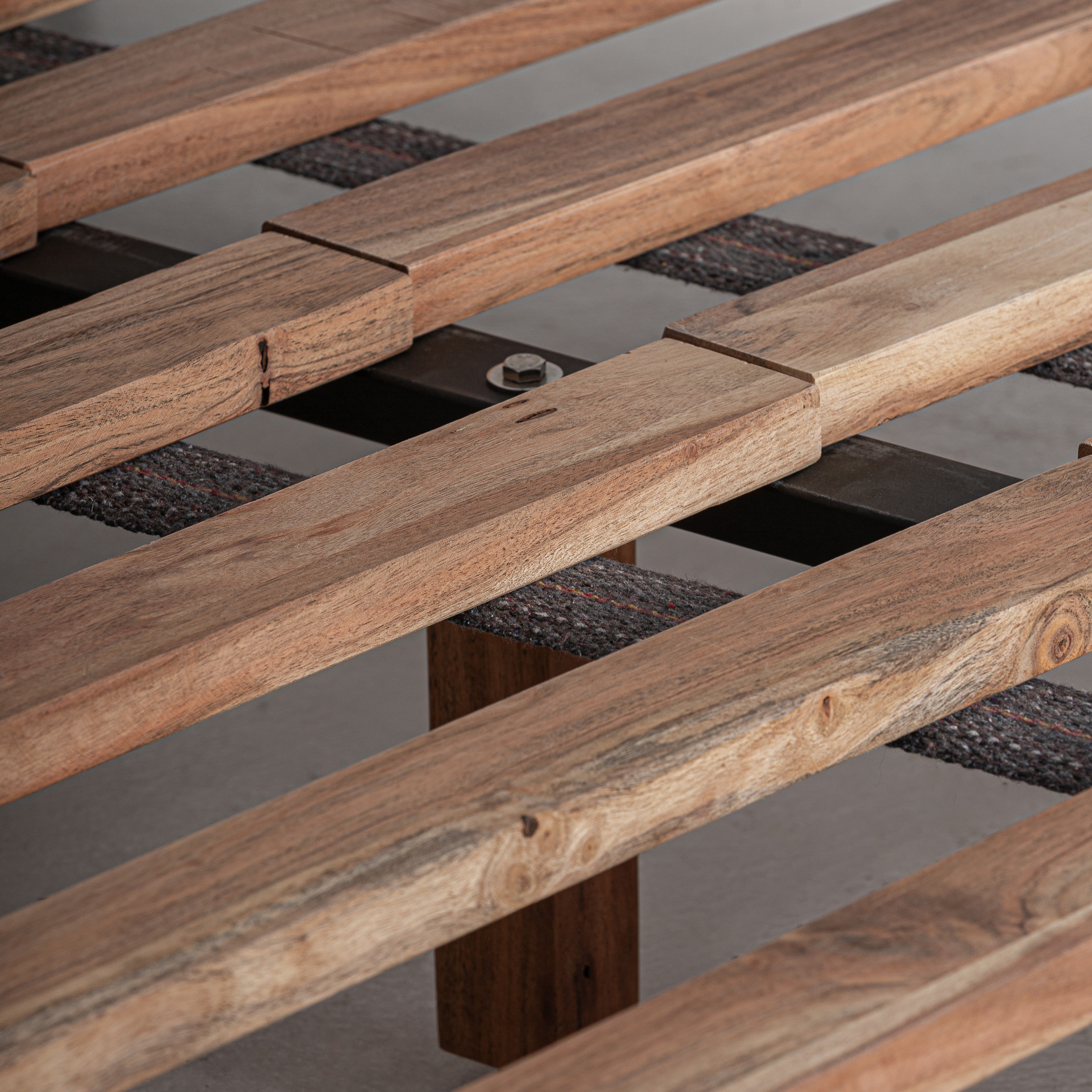 DIMENSIONES Medidas (largo x ancho x alto): 195 x 216 x 215 cm. Peso: 184,3 kg. Medida patas: 3X3X8,5 cm. Medida entre patas: 182X202 cm. Tipo de patas: Regulable Medida del cabezal: 180X8X80 cm. Del suelo al alto de la cama: 41 cm. El colchon se introduce: 180X203X19 cm dentro de la bañera Partes desmontables: estructura Peso soportado: 360 kg. Recomendado para cama de: 180 cm. Incluye: herrajes, somier. Producto desmontable.