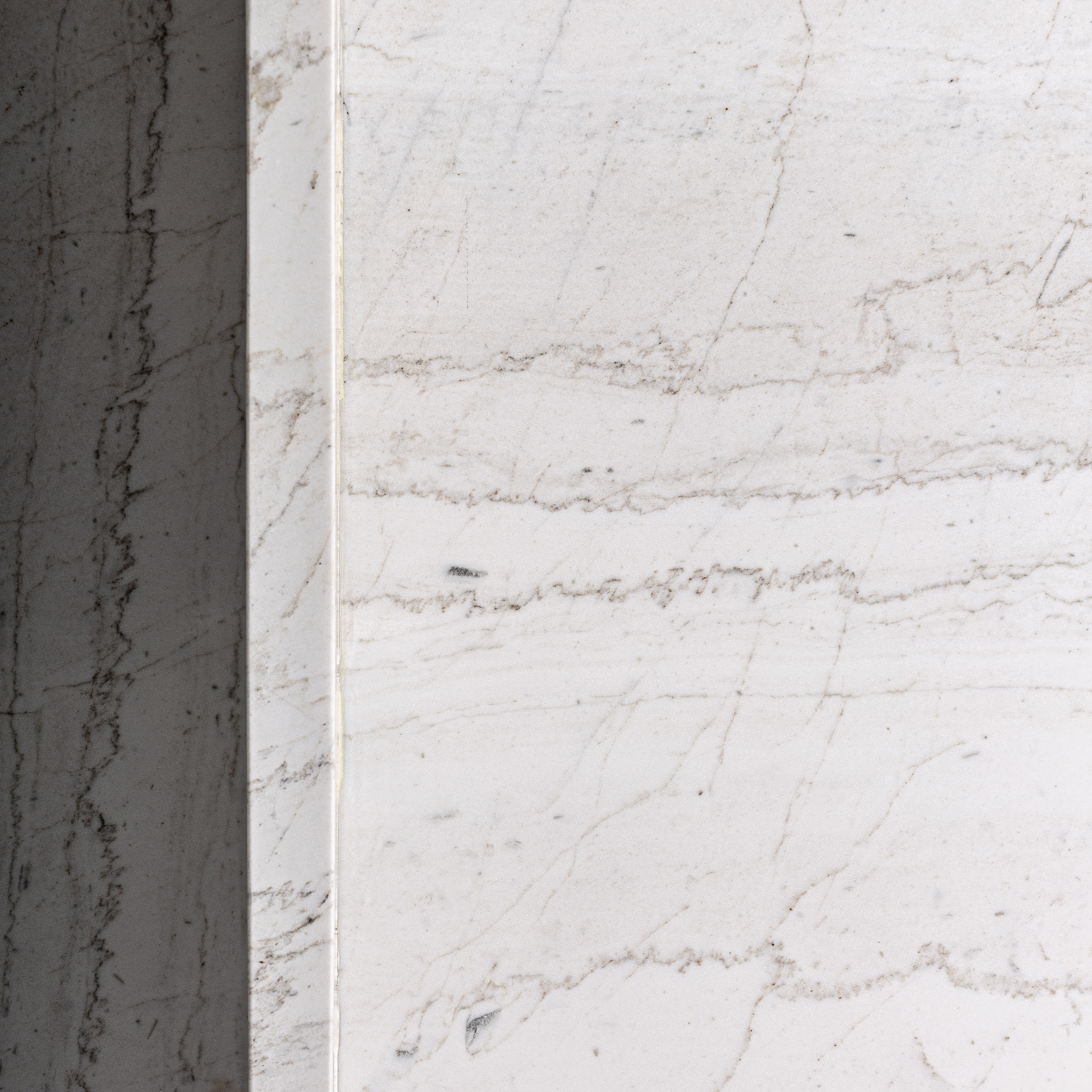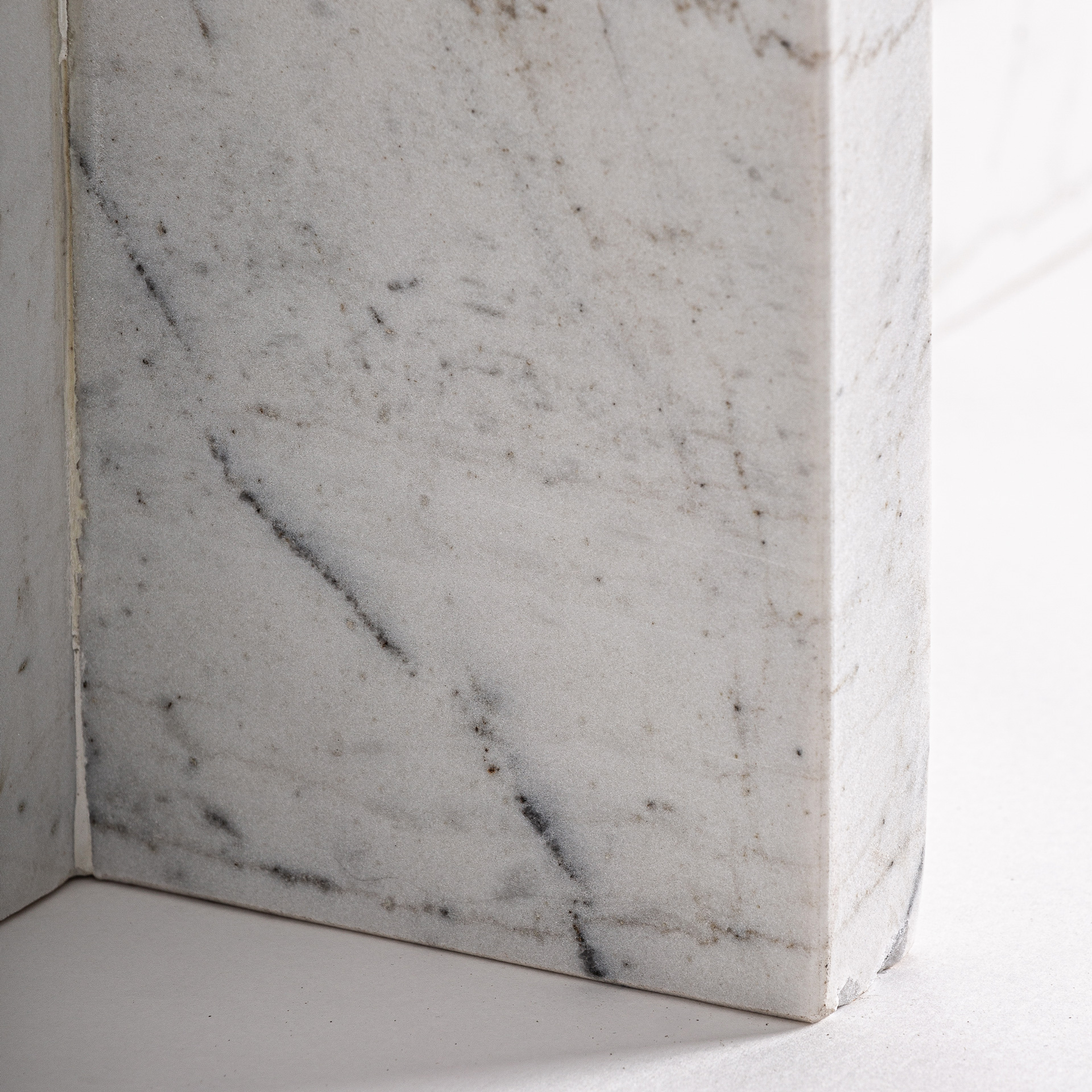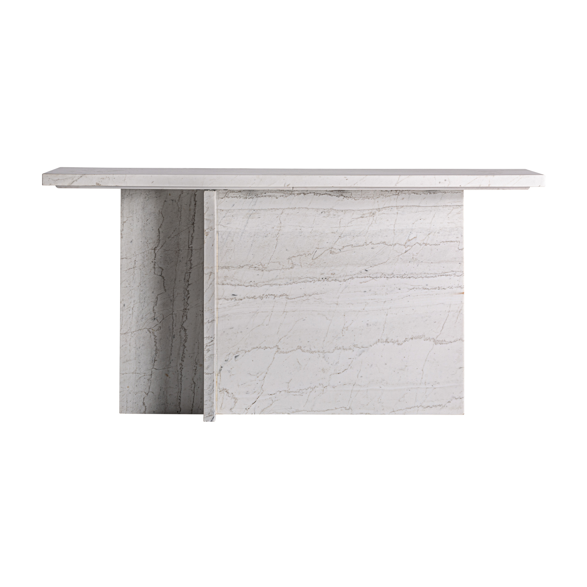 Consola Khat de estilo contemporáneo, fabricado en mármol en color blanco roto. Producto desmontable.