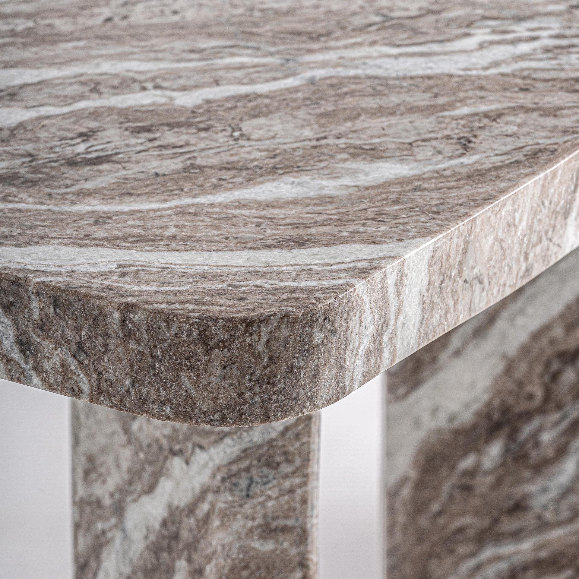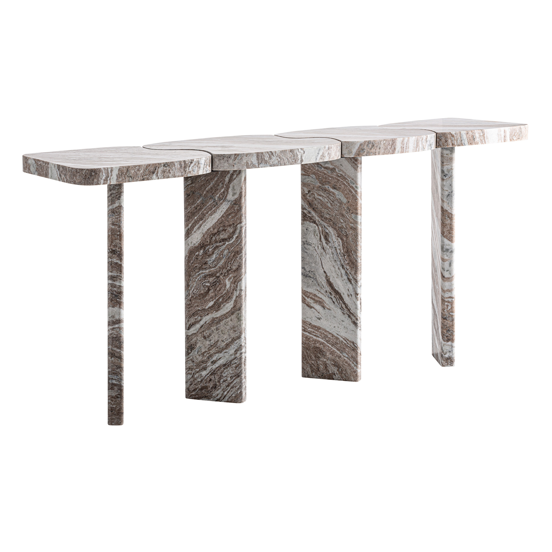 La Consola Legsby combina arquitectura, ritmo y materialidad en una propuesta contemporánea de gran equilibrio visual. Realizada en mármol en tonos neutros, su estructura se apoya en una sucesión de patas verticales que aportan ligereza y dinamismo al conjunto. Ideal para recibidores, zonas de paso o espacios contract donde el diseño y la nobleza del material son protagonistas.