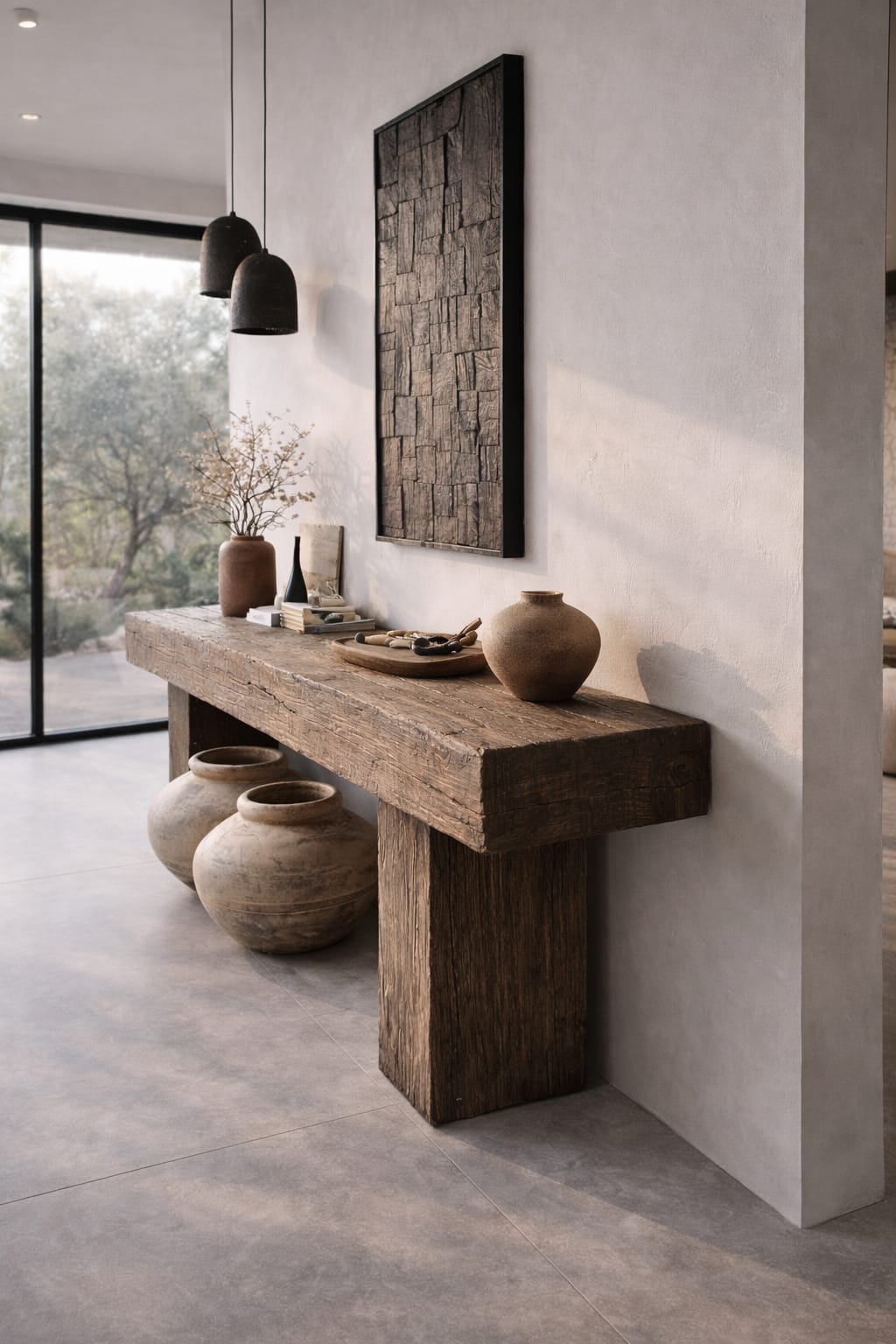 La Consola Meihua nace de la expresividad natural de la madera maciza trabajada artesanalmente. Una pieza de presencia sólida y carácter orgánico que transforma la materia en arquitectura.