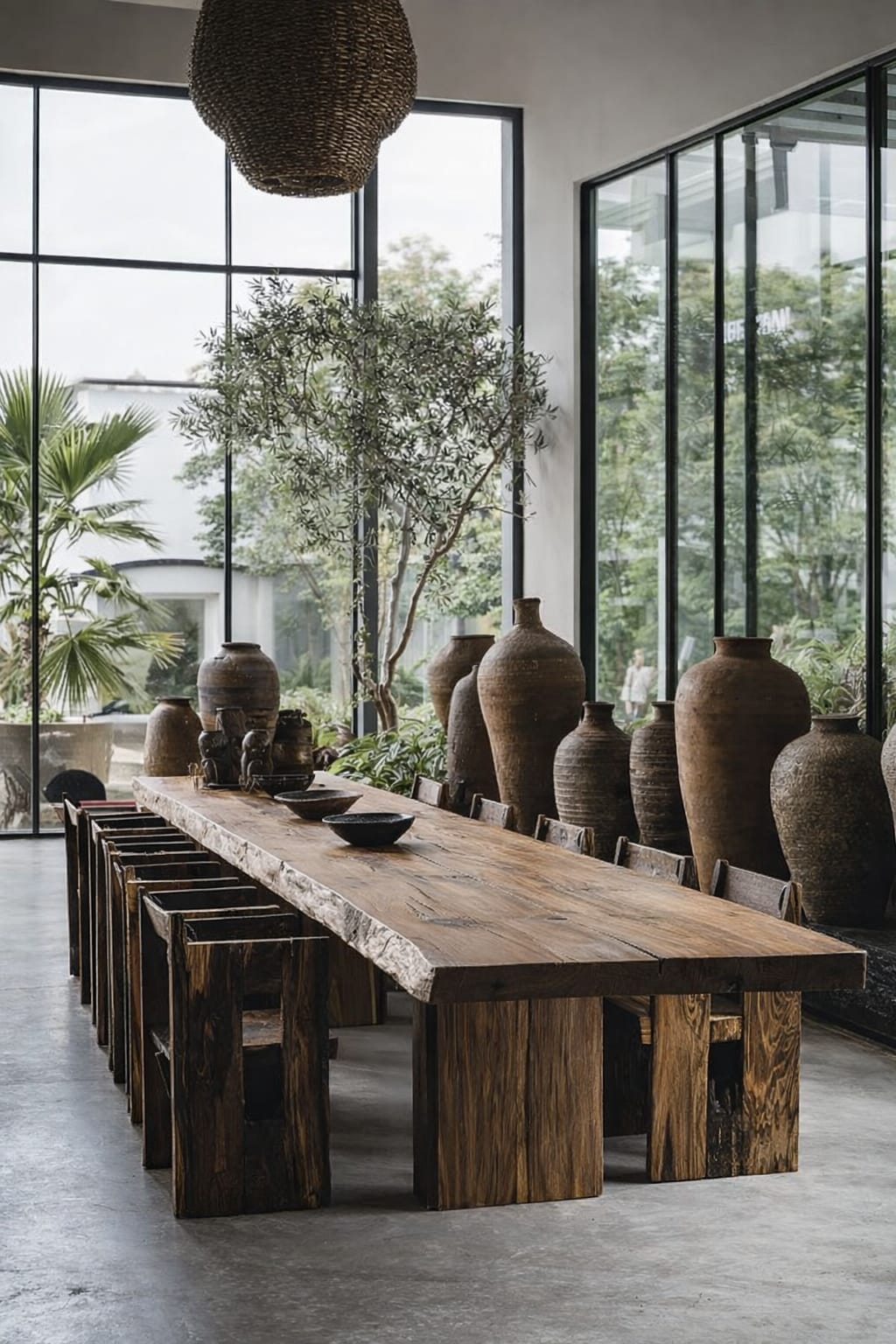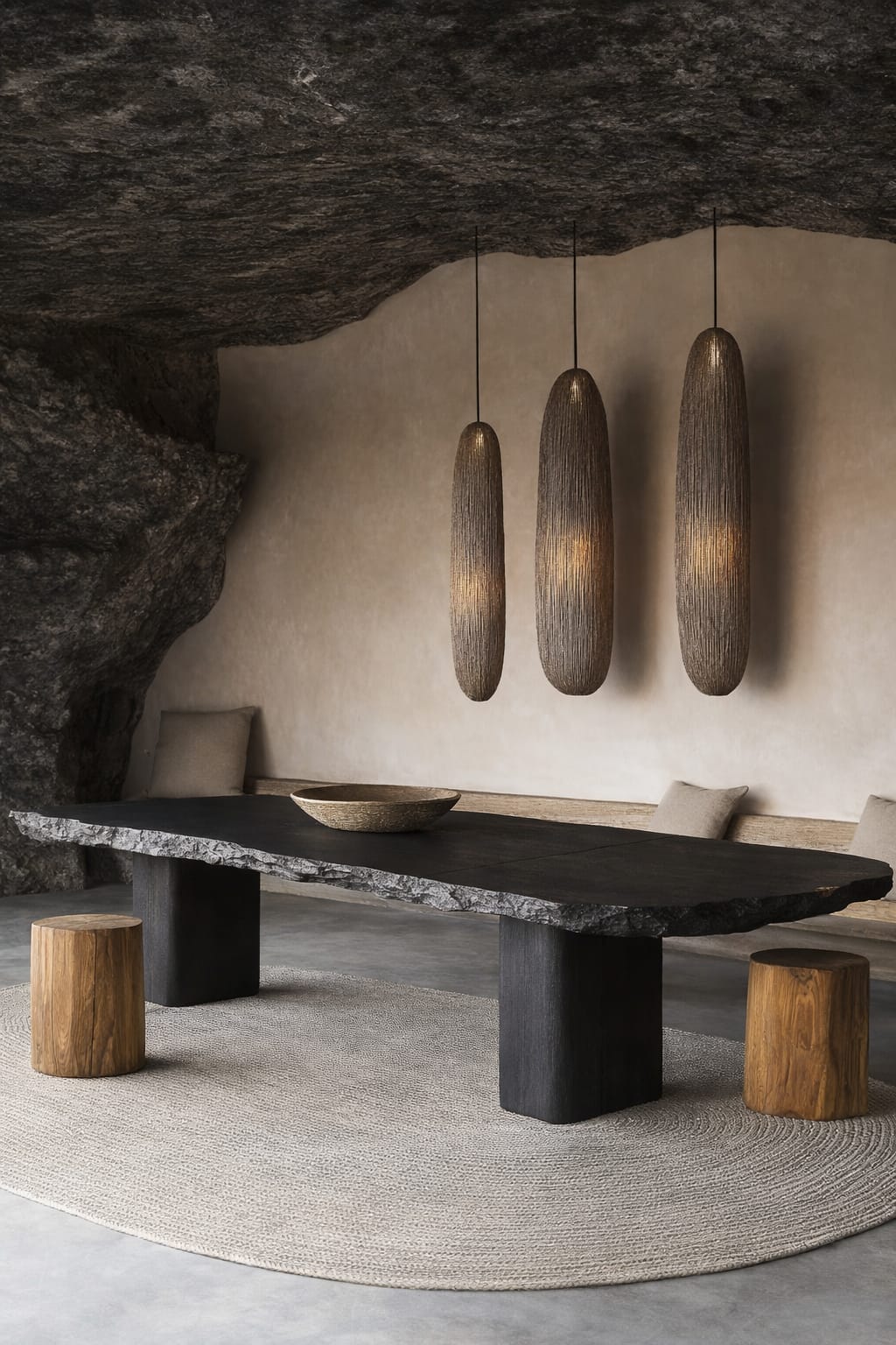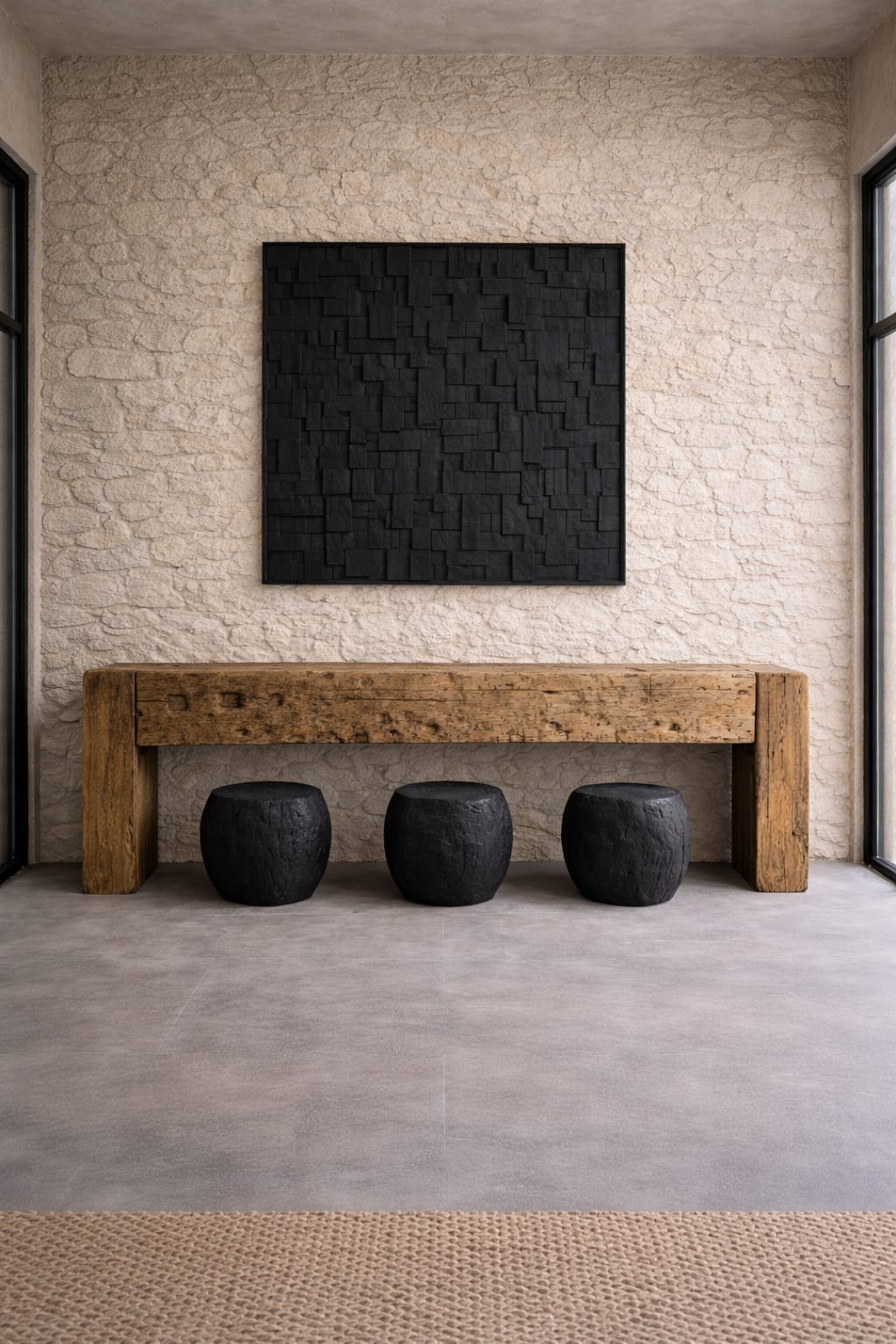 La Consola Yulan nace de la fuerza primitiva de la madera maciza en su estado más auténtico. Una pieza de gran presencia escultórica que combina estructura monolítica, textura orgánica y proporciones contundentes, convirtiendo la materia en arquitectura.