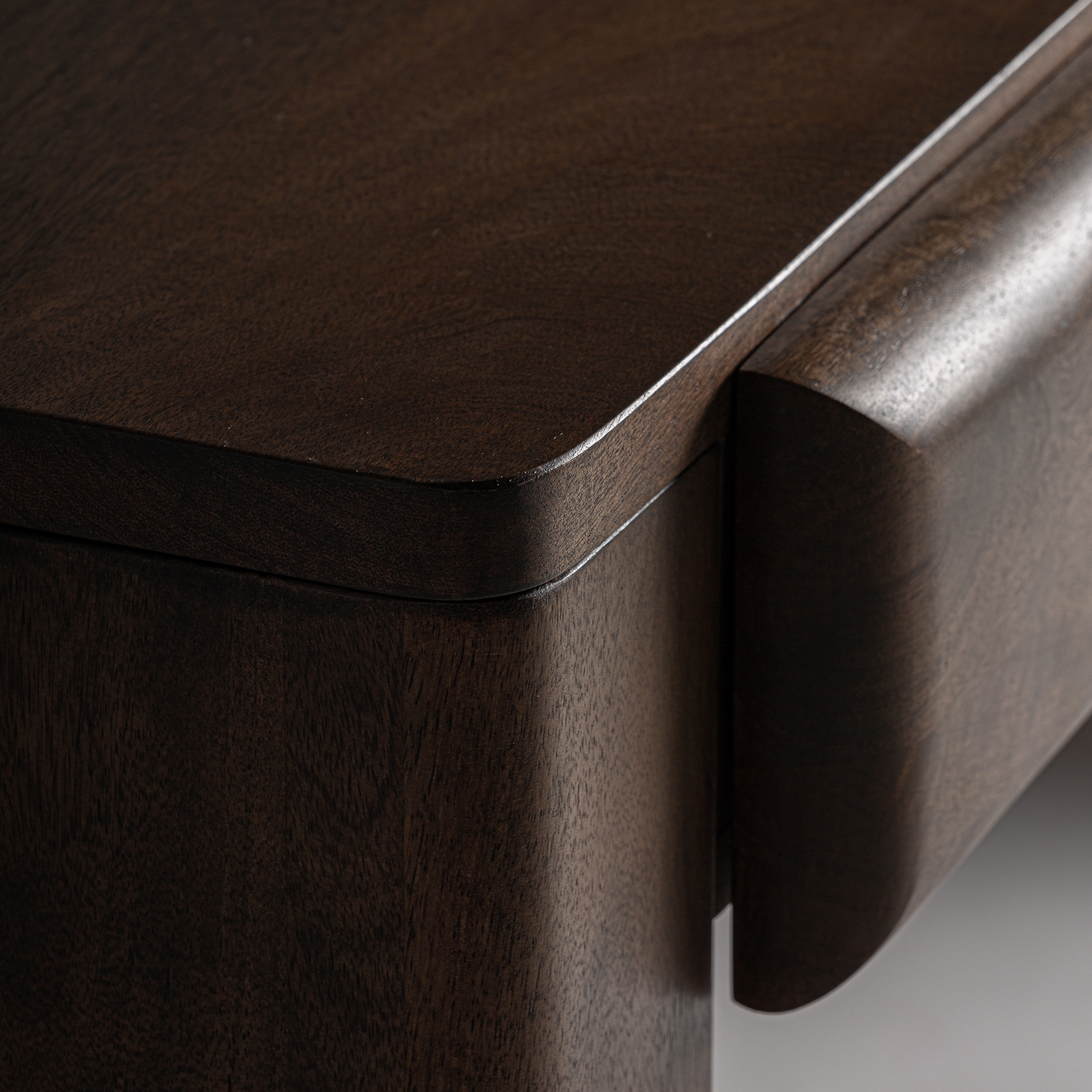 Escritorio gibles, en color marrón, de estilo art deco. Fabricado en madera de mango. Producto desmontable.