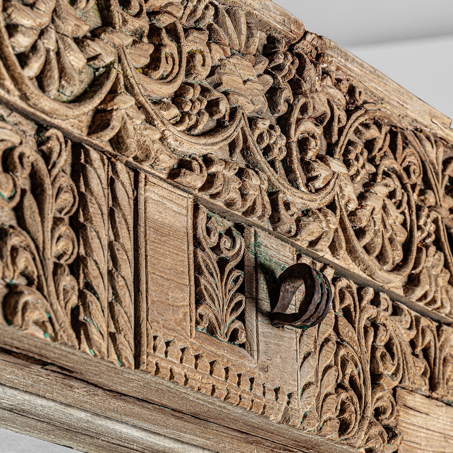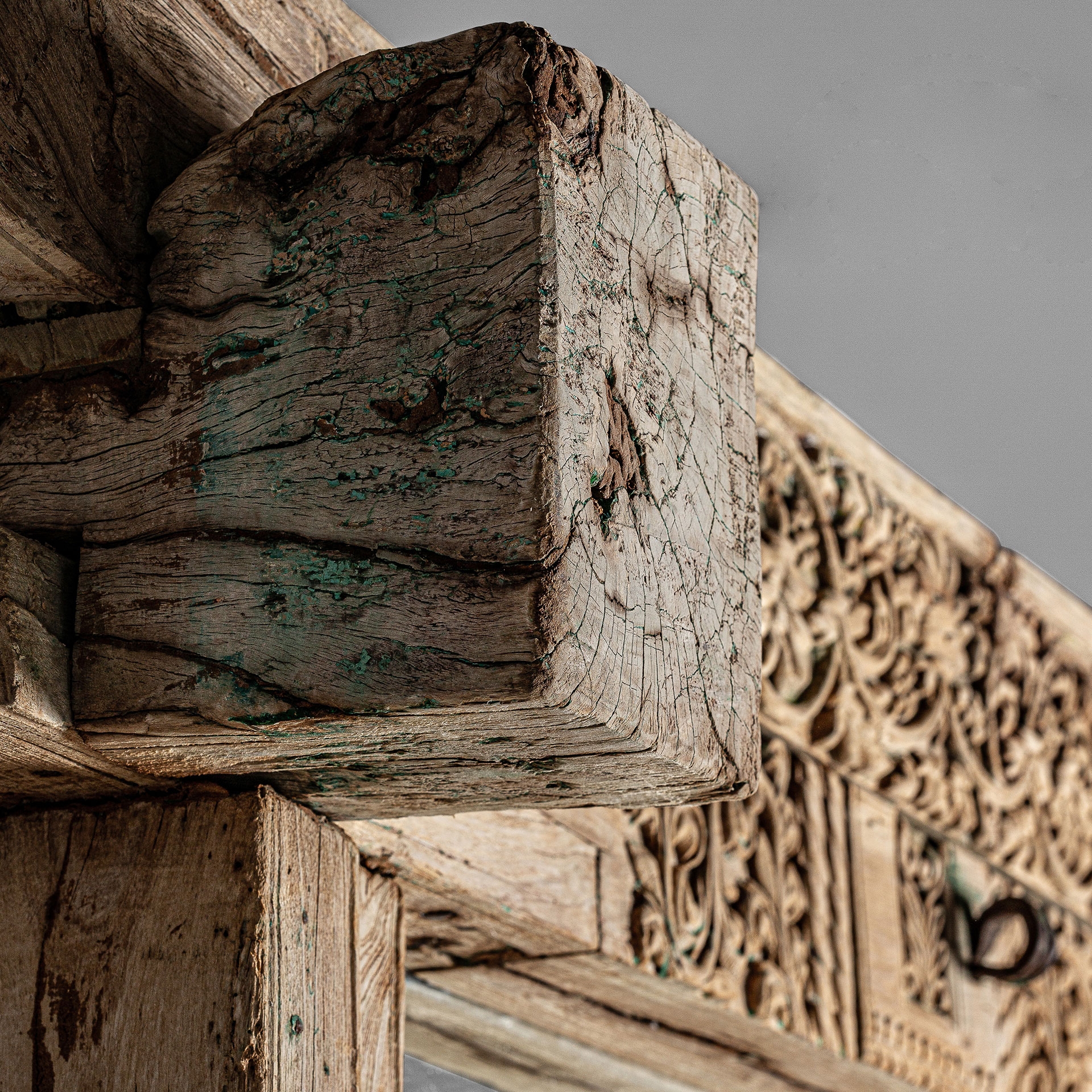El espejo Argeen, elaborado en madera de teka con acabado envejecido, destaca por su estética étnica y su presencia imponente. Una pieza que aporta textura y profundidad visual.