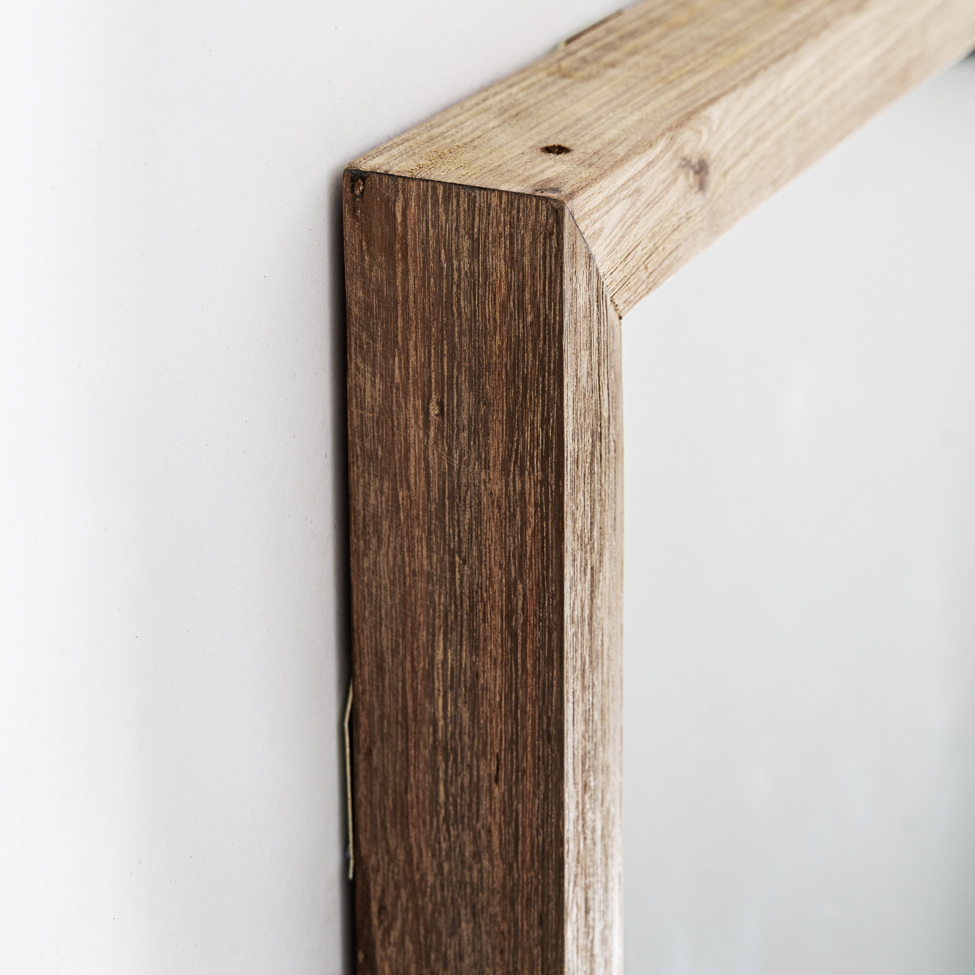 Espejo Tahus de estilo rústico, fabricado en madera de teka reciclada en color marrón claro, combinado con espejo.