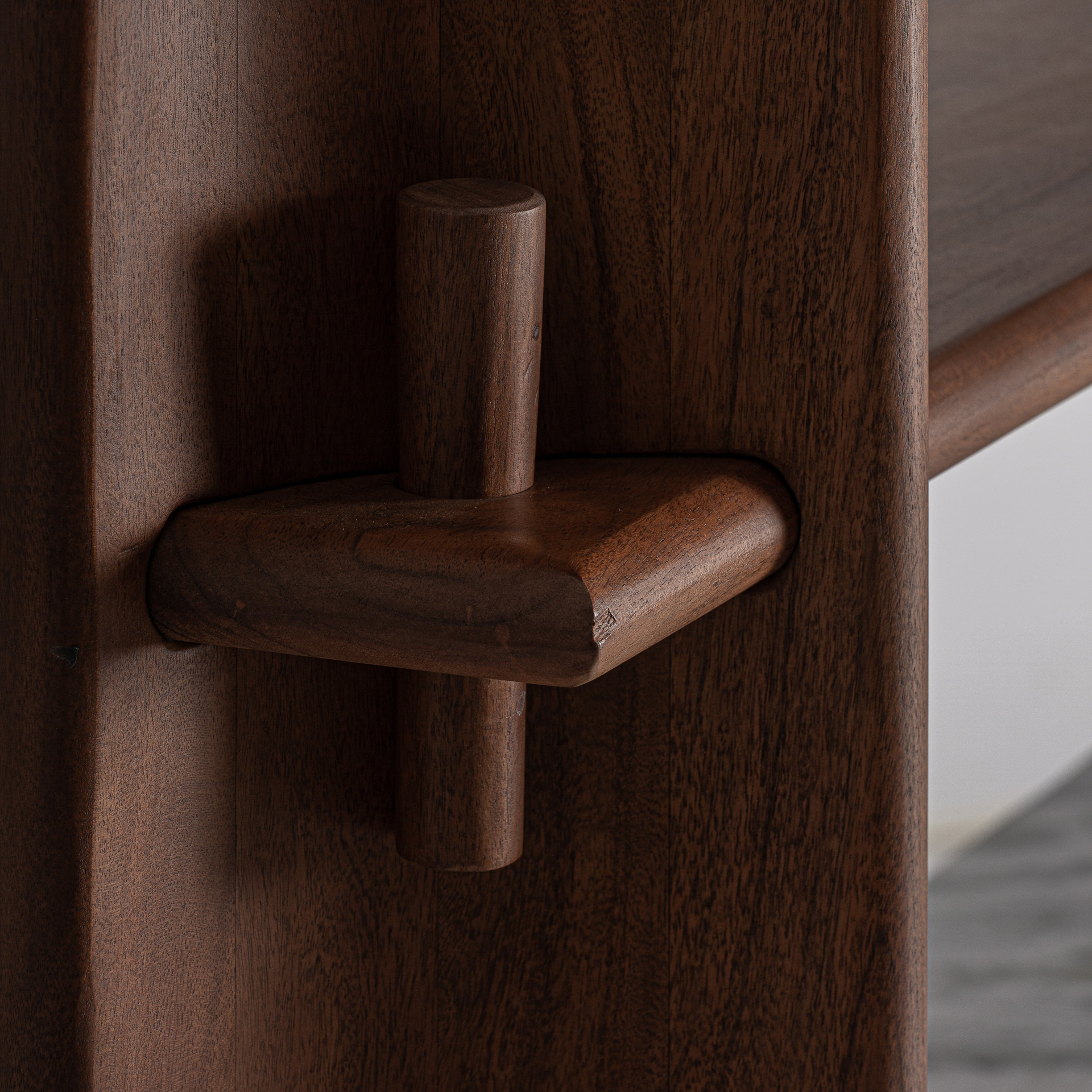 Estanteria, fabricado en madera de acacia en color marrón, combinado con mármol en color blanco.