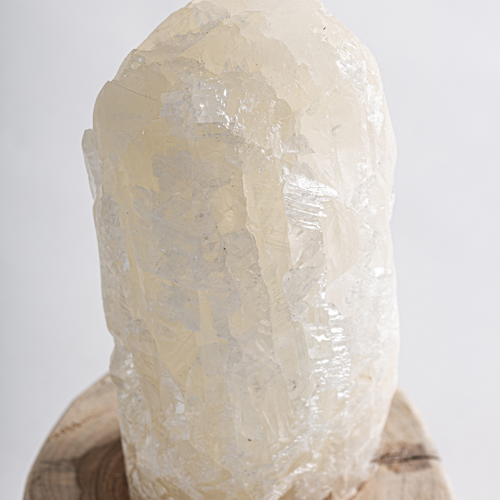 La figura decorativa, en cristal marfil, destaca por su acabado suave y diseño sobrio.