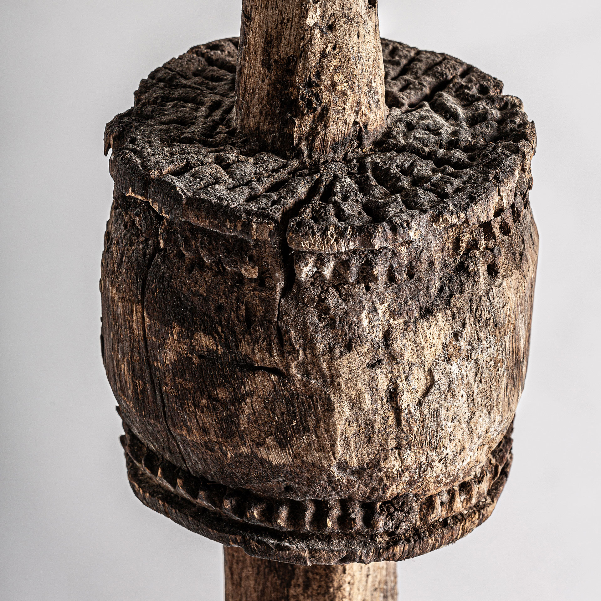 La figura Laye, en madera de mango marrón y hierro negro, presenta una estética étnica de gran sobriedad.