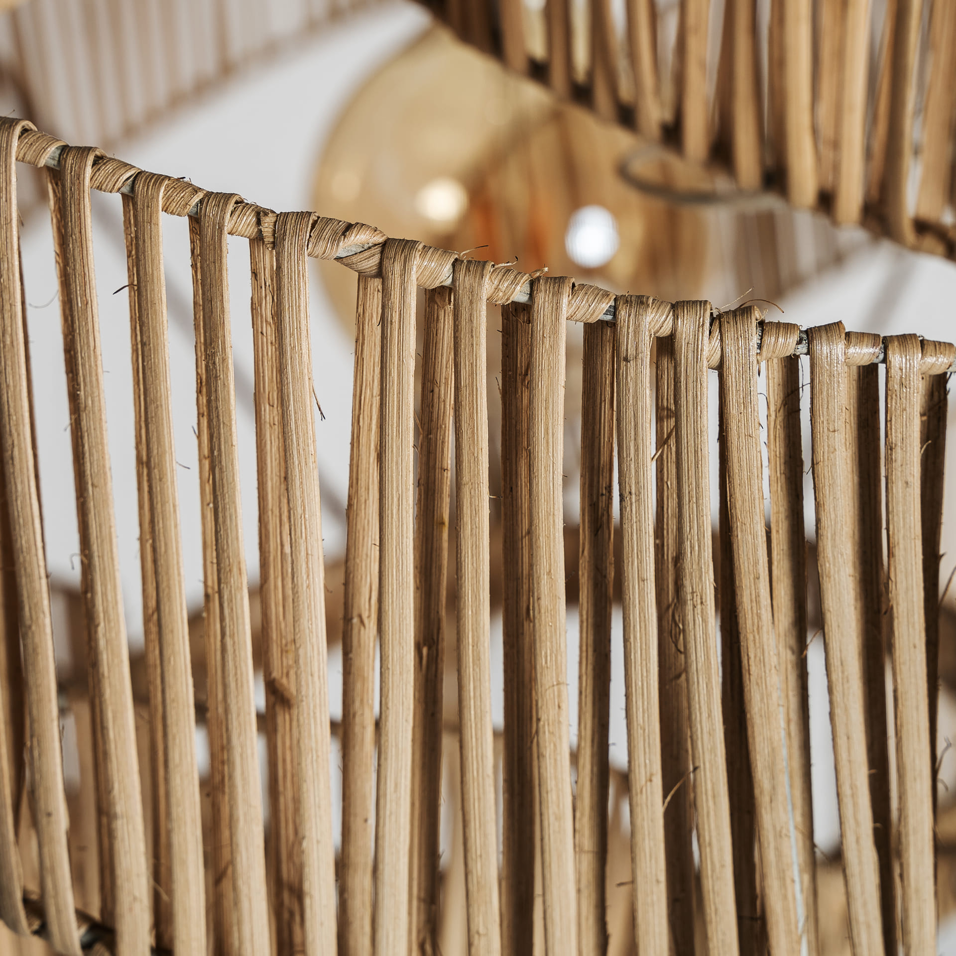 Lámpara de colgar de estilo boho fabricado en ratán en color marrón.
