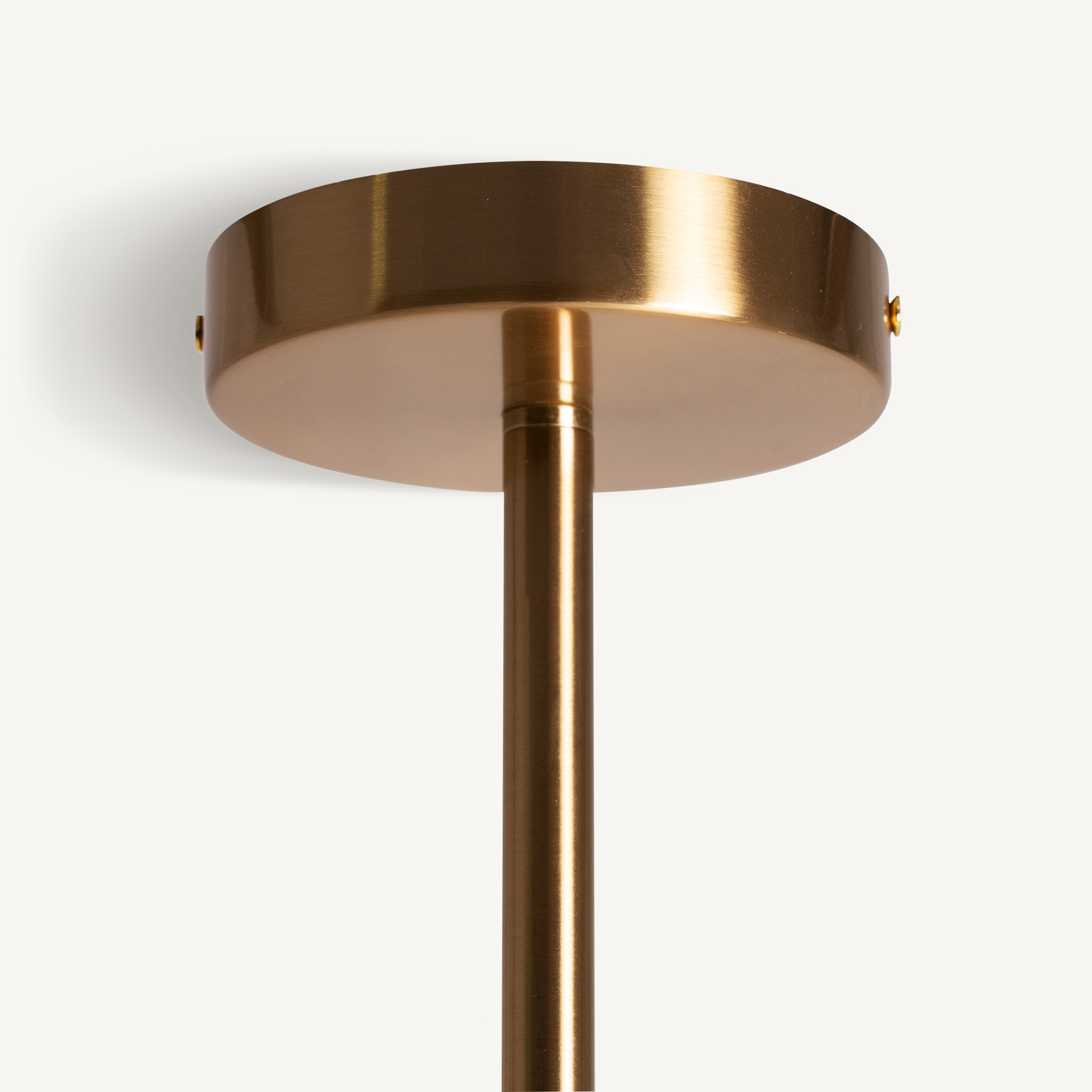 La lámpara de colgar Sahi reinterpreta el art déco con cristal transparente y estructura en cobre. Una pieza sofisticada que ilumina el espacio con estilo atemporal.