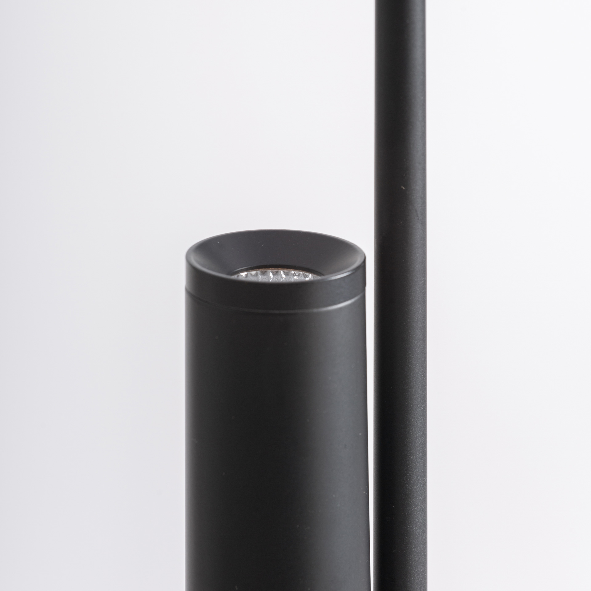La lámpara Valesha aporta ligereza contemporánea con acrílico blanco e hierro en negro y dorado. Producto desmontable.