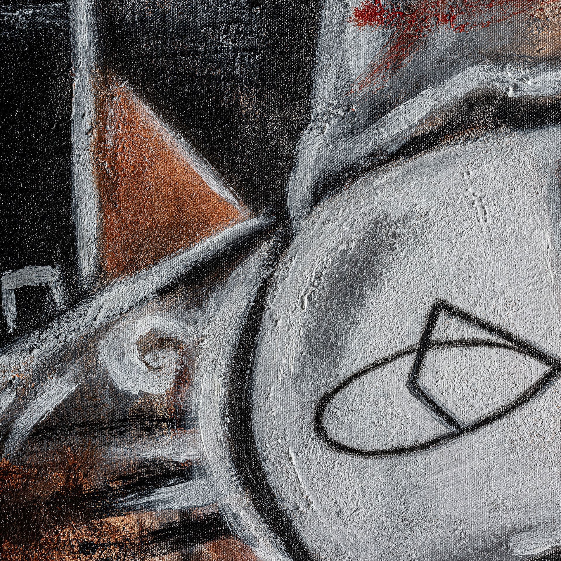 El lienzo Menina, en tonos oscuros y acabado artesanal, presenta una estética contemporánea de gran profundidad visual. Una creación que aporta carácter y estilo.
