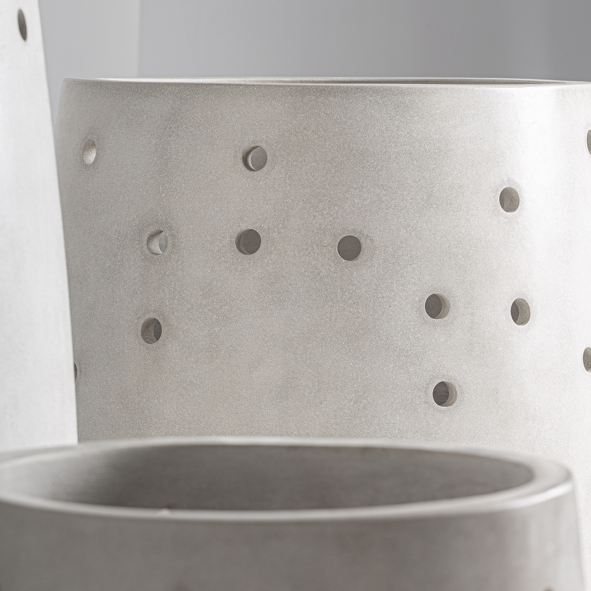 El Macetero JACQUARD J/3, diseñada por Estudi{H}ac, presenta un estilo contemporáneo elaborado en cemento en color blanco roto. Su estética limpia aporta serenidad y equilibrio visual.