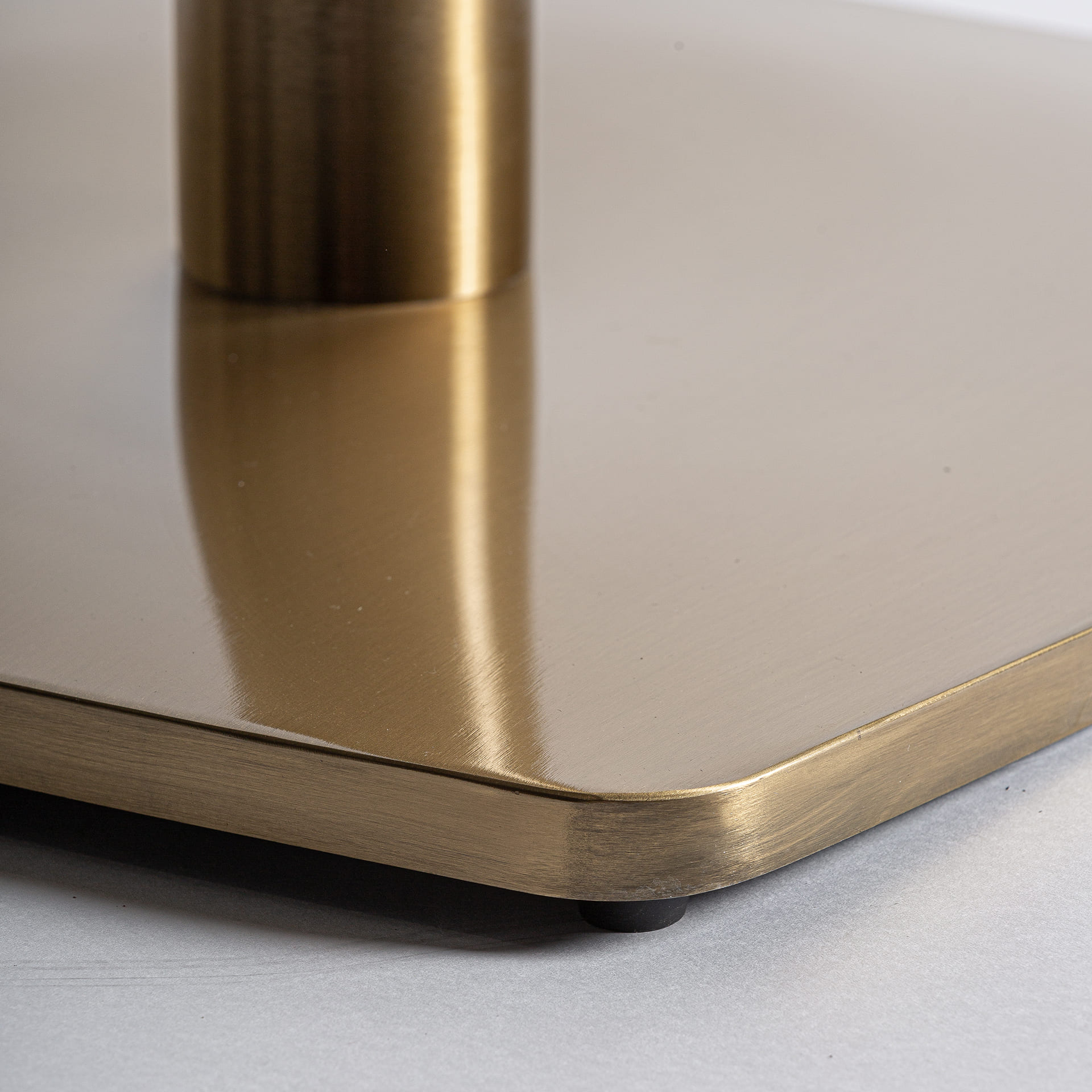 La mesa bar Valreas, elaborada en mármol marrón y acero dorado, es una pieza de fuerte presencia visual. Su diseño compacto y materiales nobles la convierten en un punto focal elegante para espacios sociales.