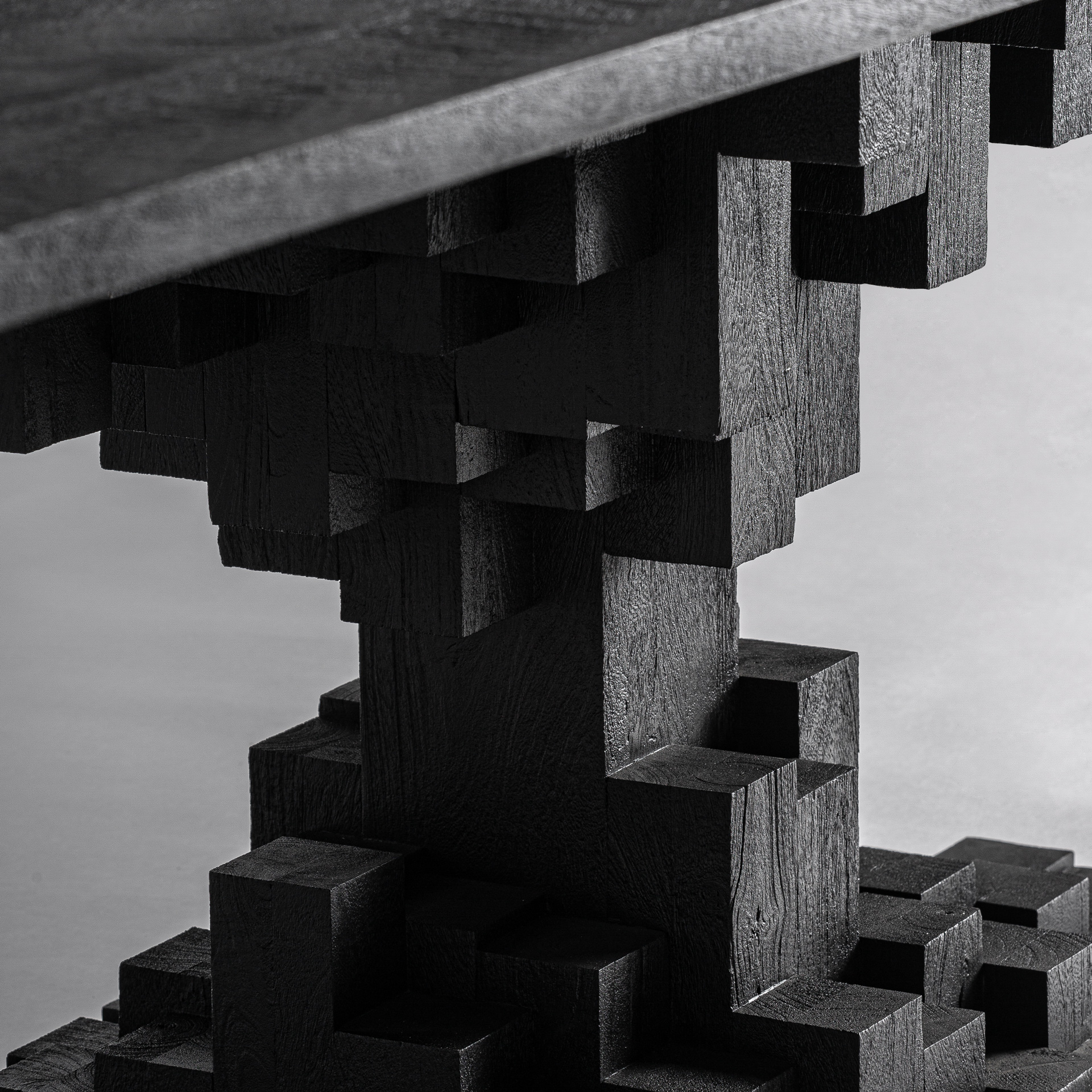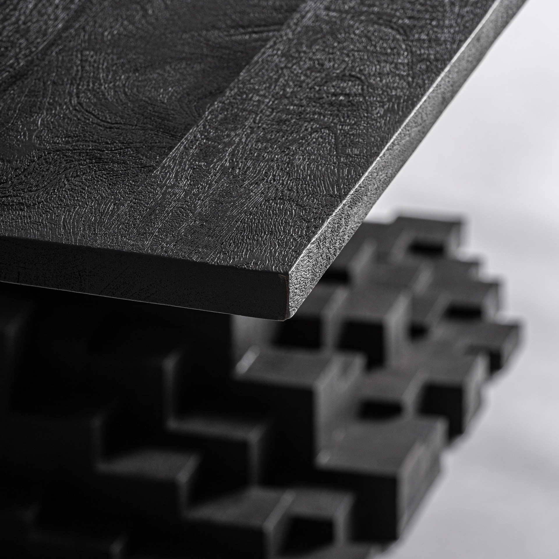 La Mesa Comedor PÈTRIA se erige como un pilar de basalto: robusta y solemne, con una superficie amplia sostenida por una única columna central que evoca la fuerza de la tierra volcánica. Su diseño monumental, de líneas puras y geometría imponente, transforma el comedor en un espacio de contemplación y carácter atemporal.