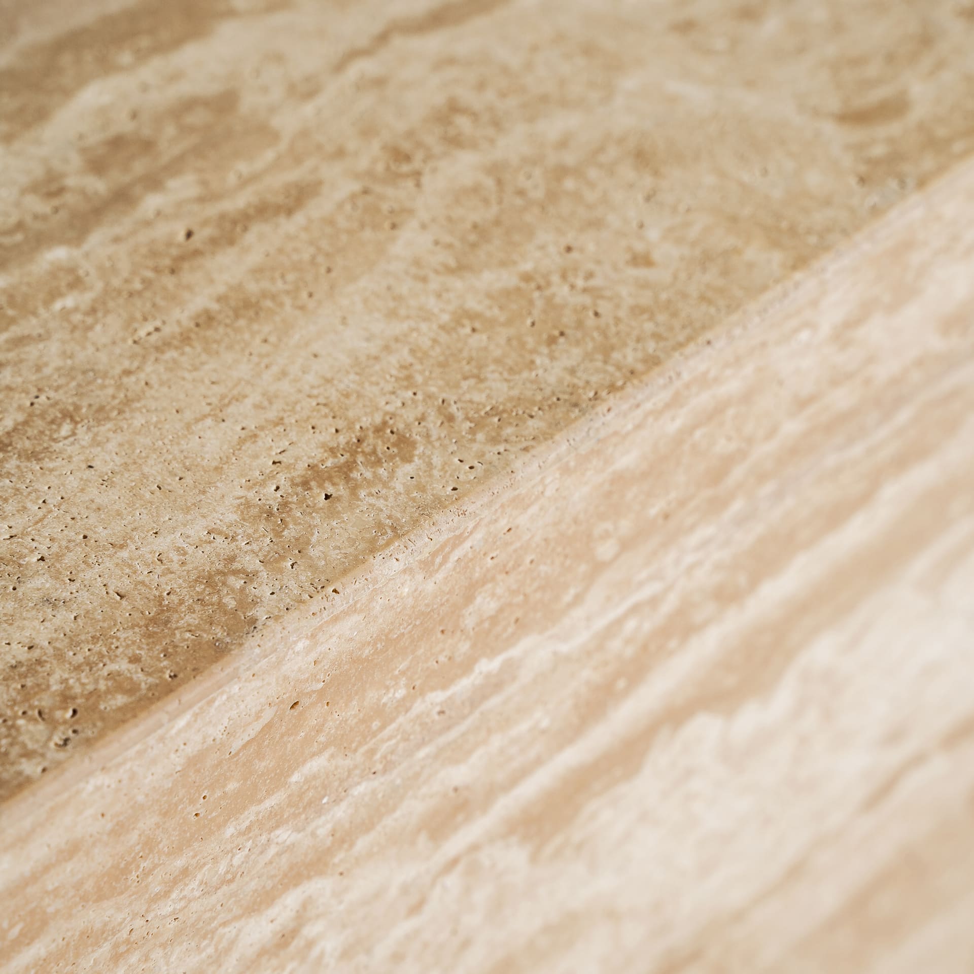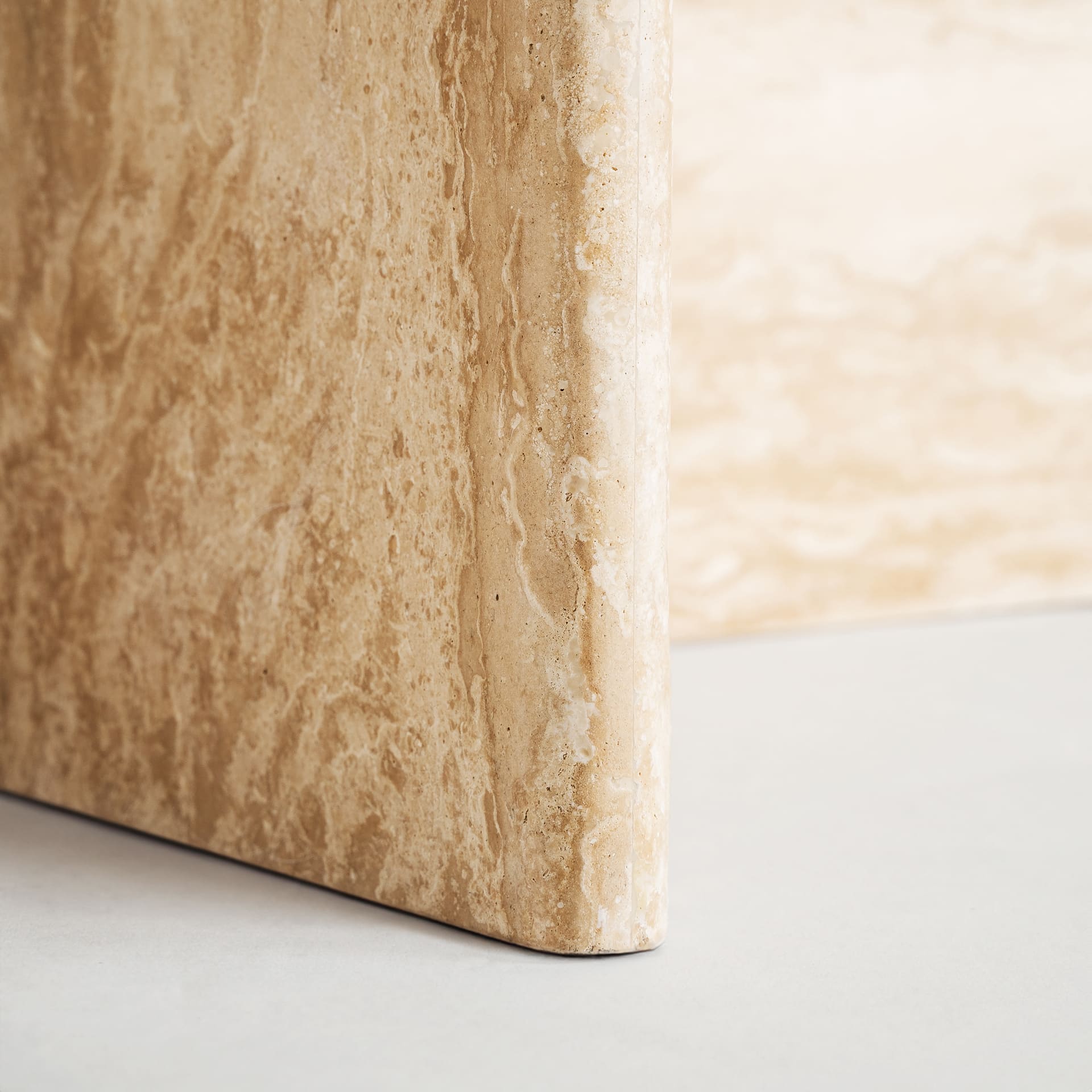 Con la elegancia que caracteriza la mesa de centro Thiennes J/2 combina travertino claro con formas geométricas puras. Una pieza que aporta equilibrio visual y textura mineral al salón.