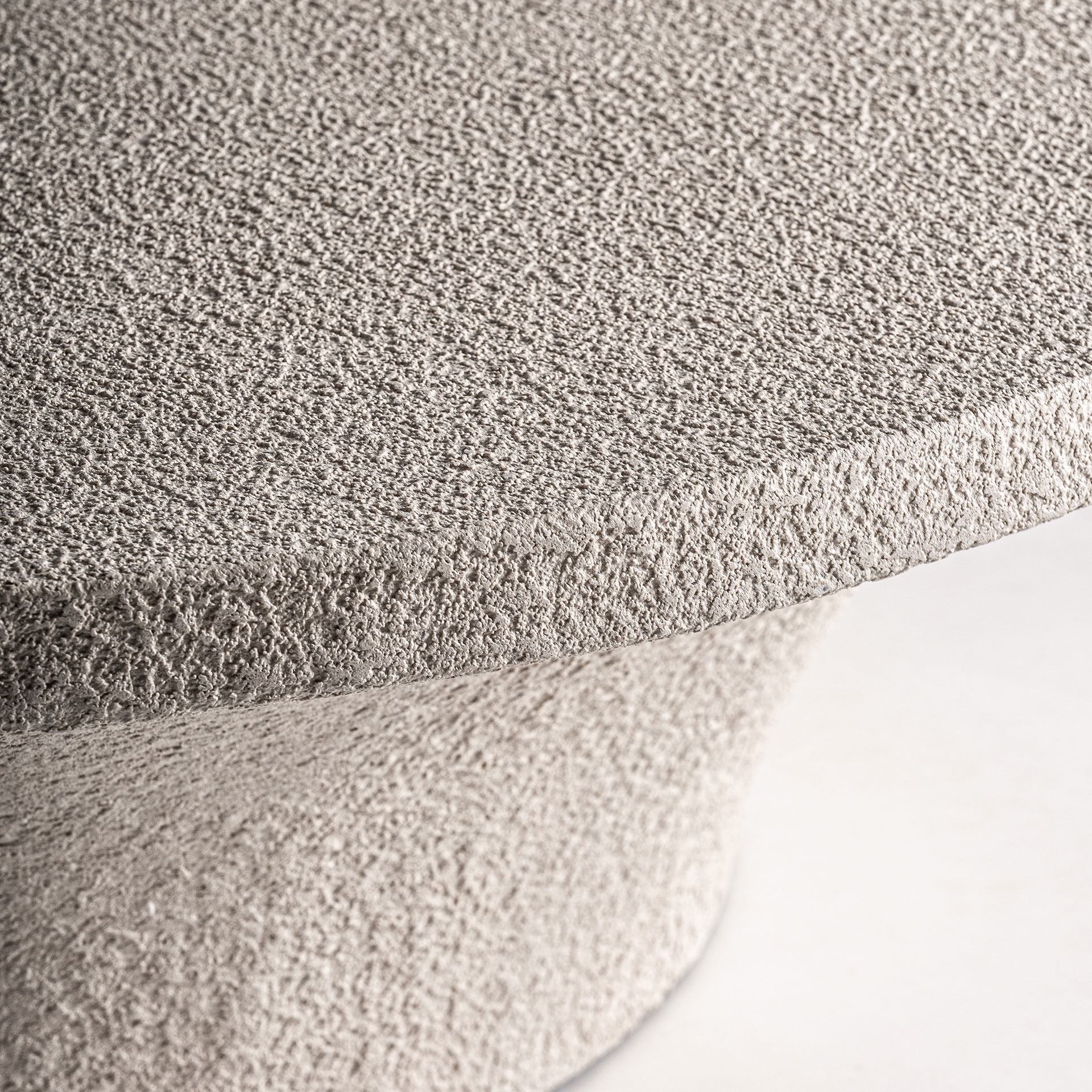 Pura materia y equilibrio visual. La mesa de centro Sion, fabricada en cemento color beige, combina robustez y diseño escultórico.