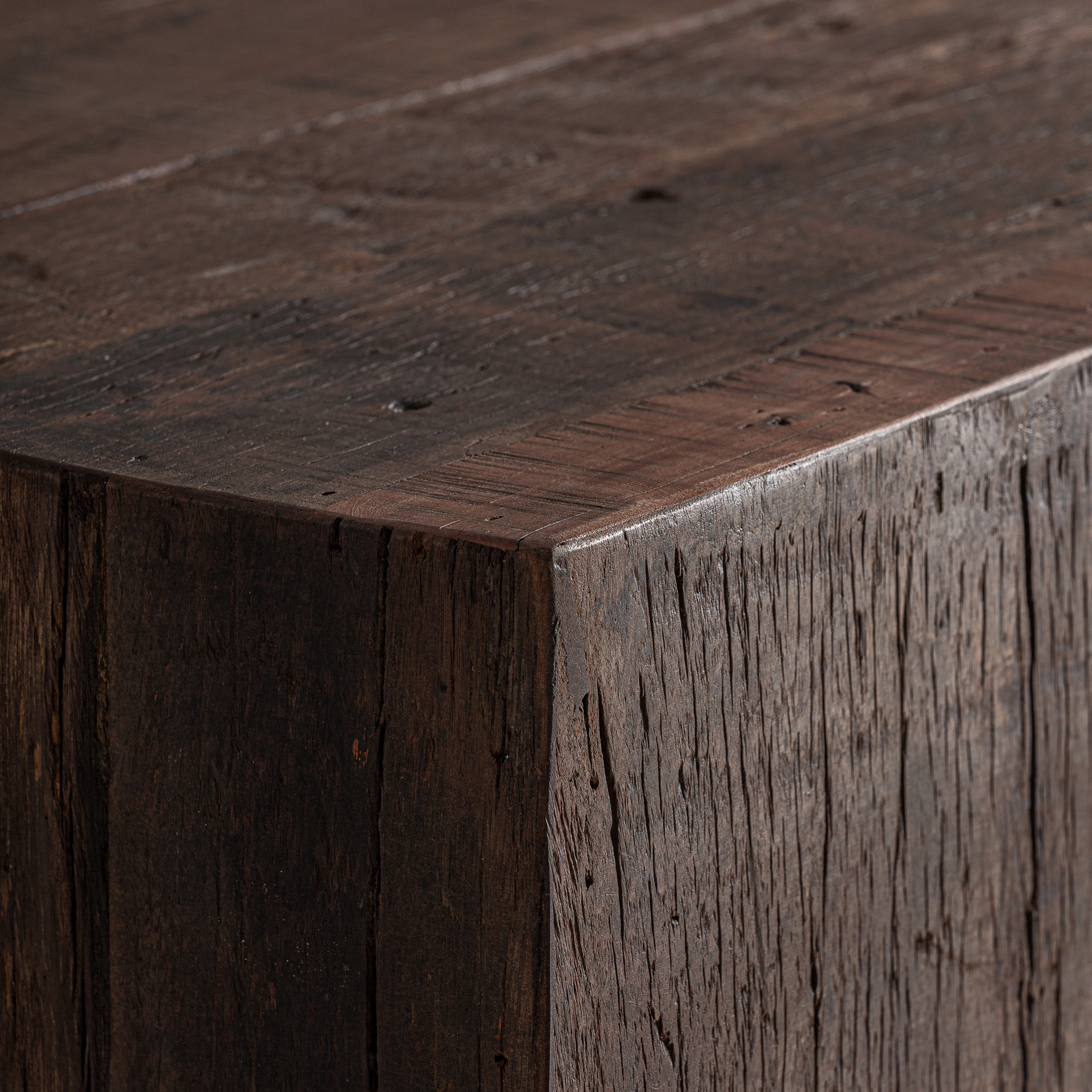 El Módulo Barra de Bar Landshut presenta un diseño limpio y estructurado en madera recuperada, ideal para proyectos que buscan autenticidad.