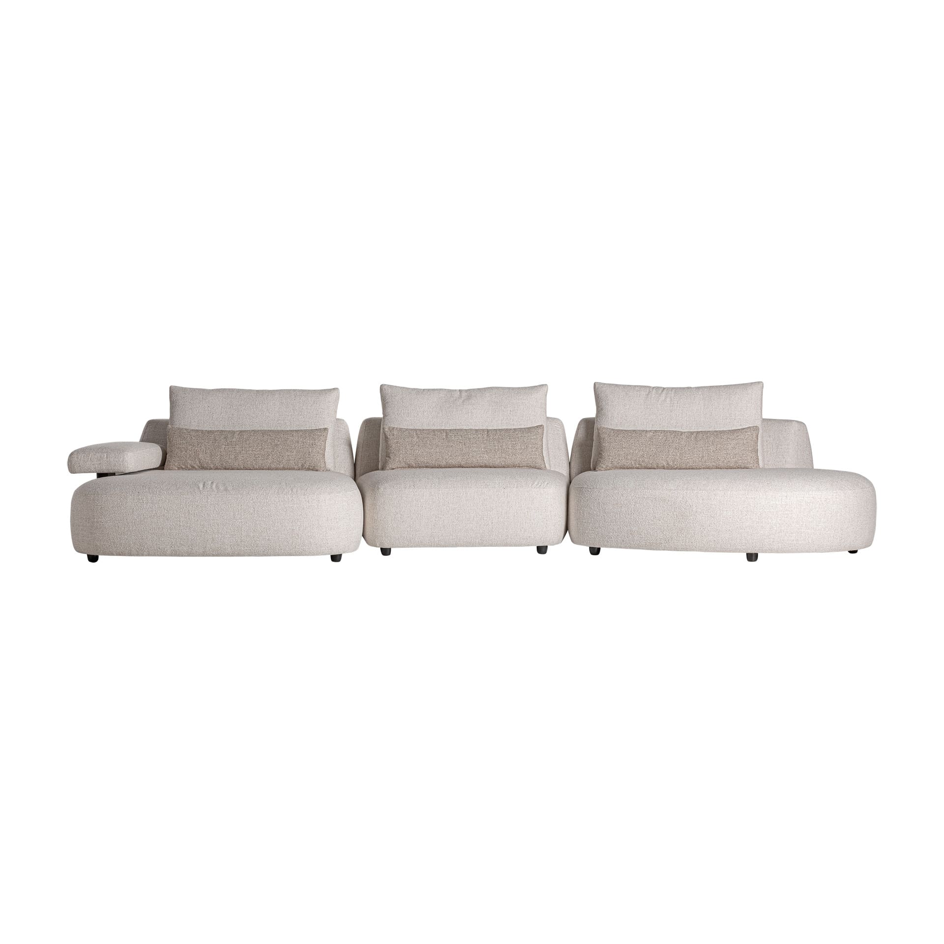 El módulo Win refleja el equilibrio perfecto entre confort y diseño elegante. Tapizado en suave poliéster beige o blanco roto y con estructura en hierro, este módulo es la base ideal para crear composiciones modulables con alma serena y sofisticada. Los cojines de pluma completan la experiencia de bienestar.