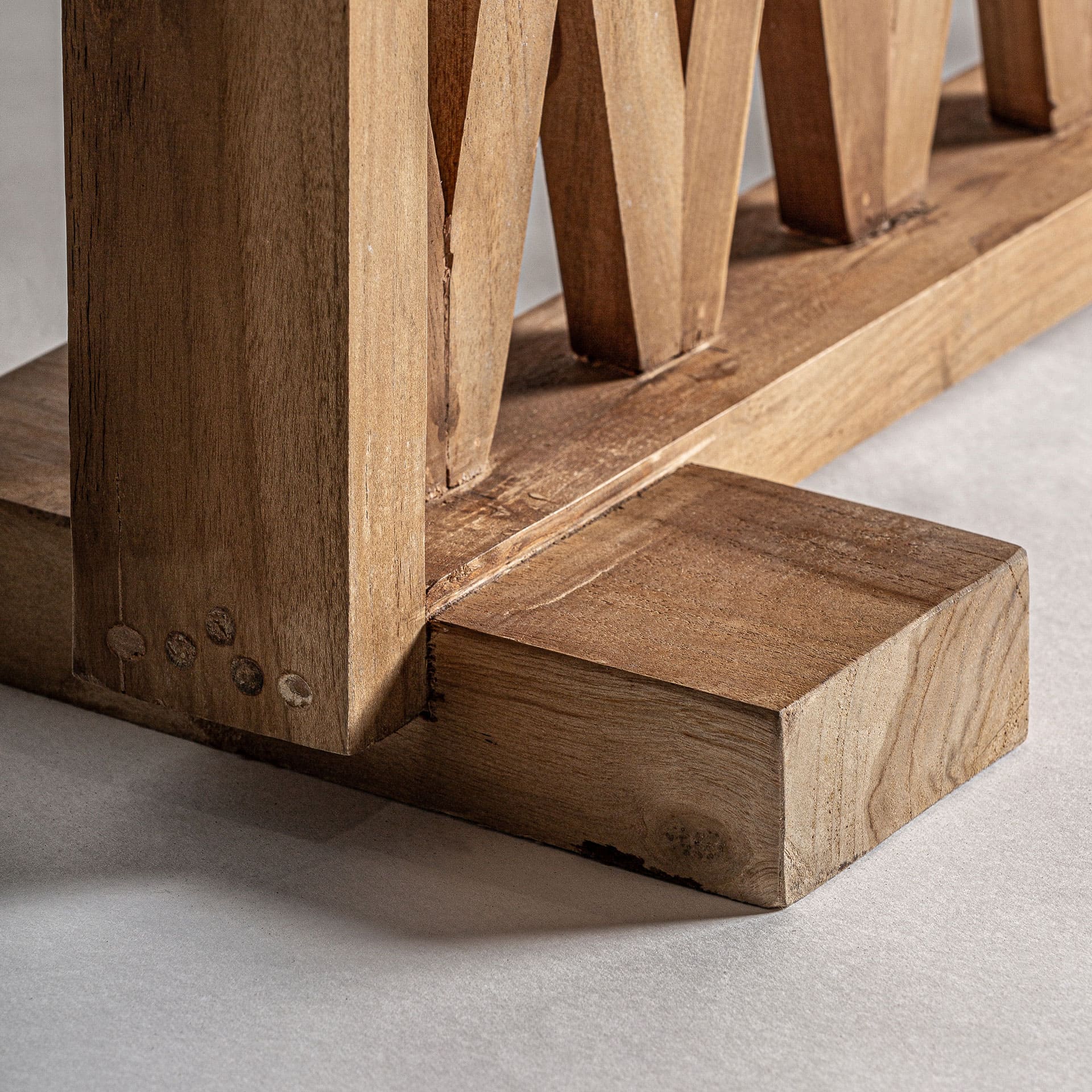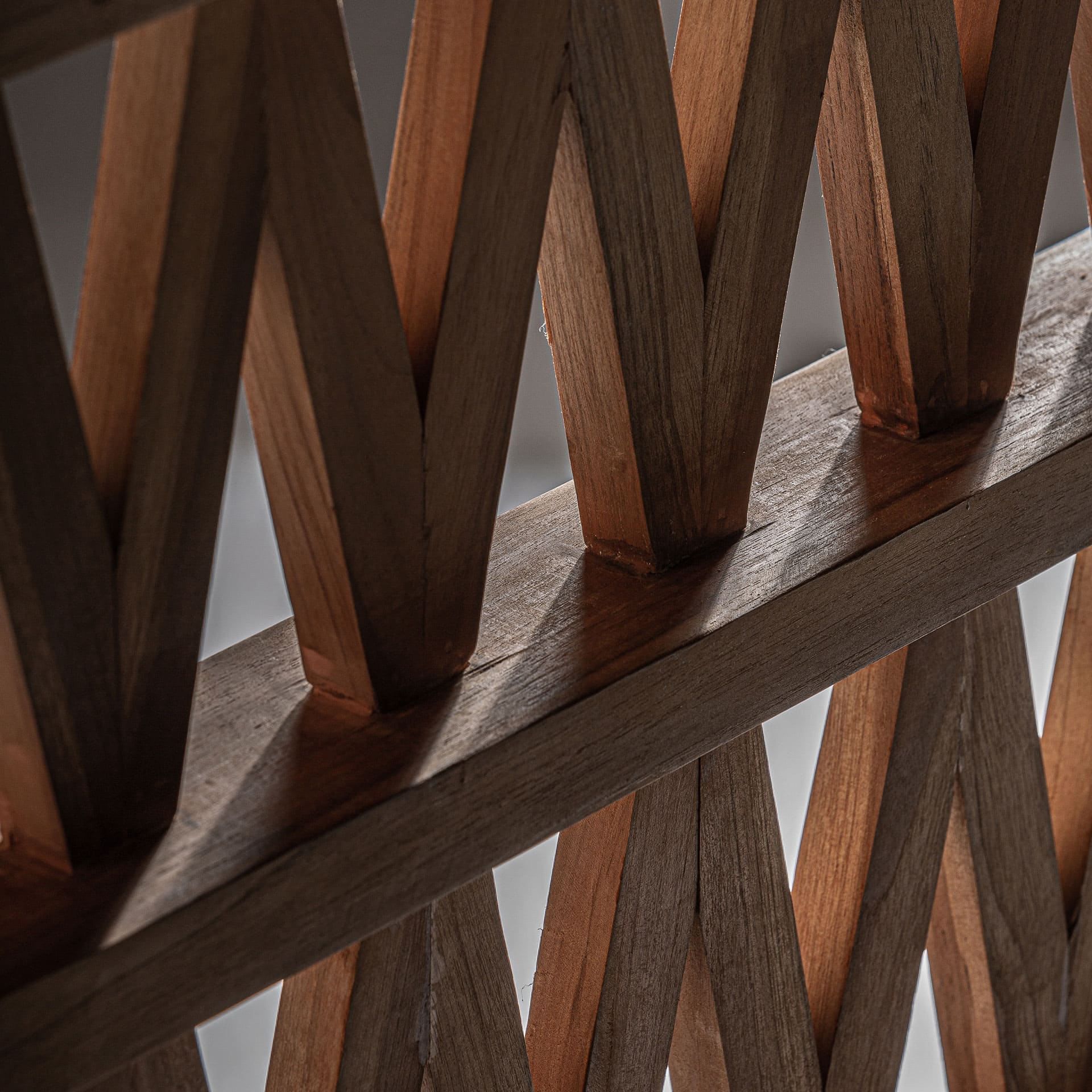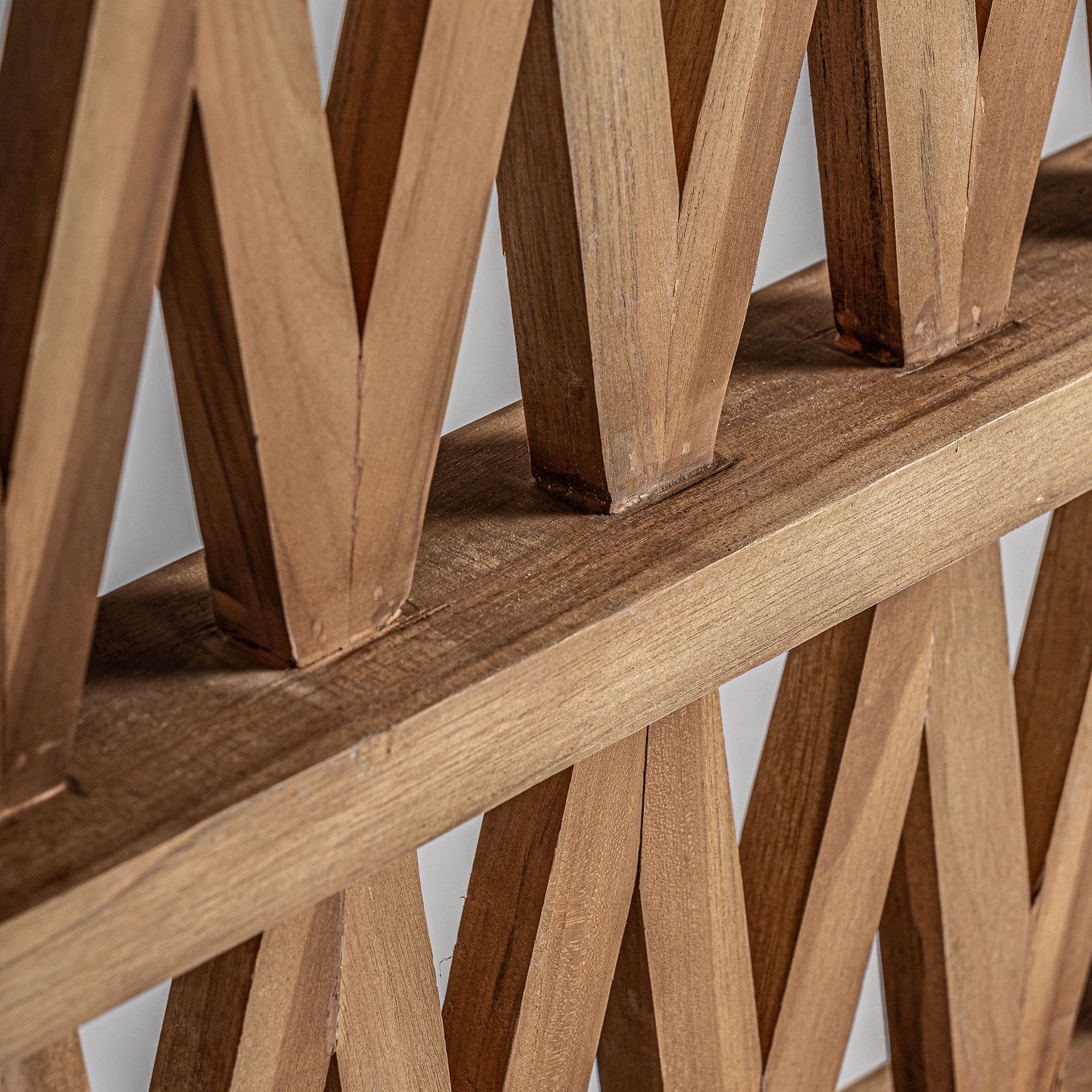 El paraván Viriat  en madera de teka marrón, destaca por su diseño boho y estructura ligera. Una pieza que divide espacios con estilo y naturalidad.