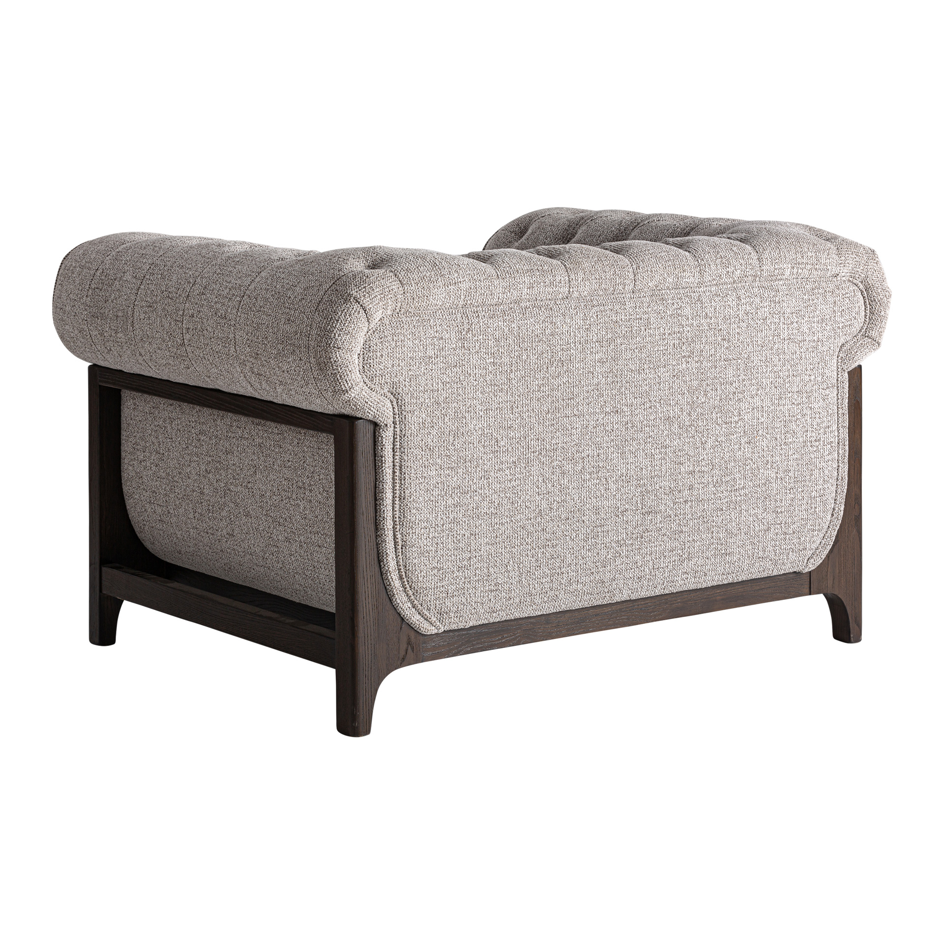 El Sillón Ipswich mantiene la esencia clásica de la colección con una estructura sólida y proporciones armoniosas. Fabricado en madera de fresno en color marrón y tapizado en poliéster gris, ofrece confort, resistencia y elegancia atemporal. Perfecto para salones, zonas lounge o proyectos contract de alto nivel.