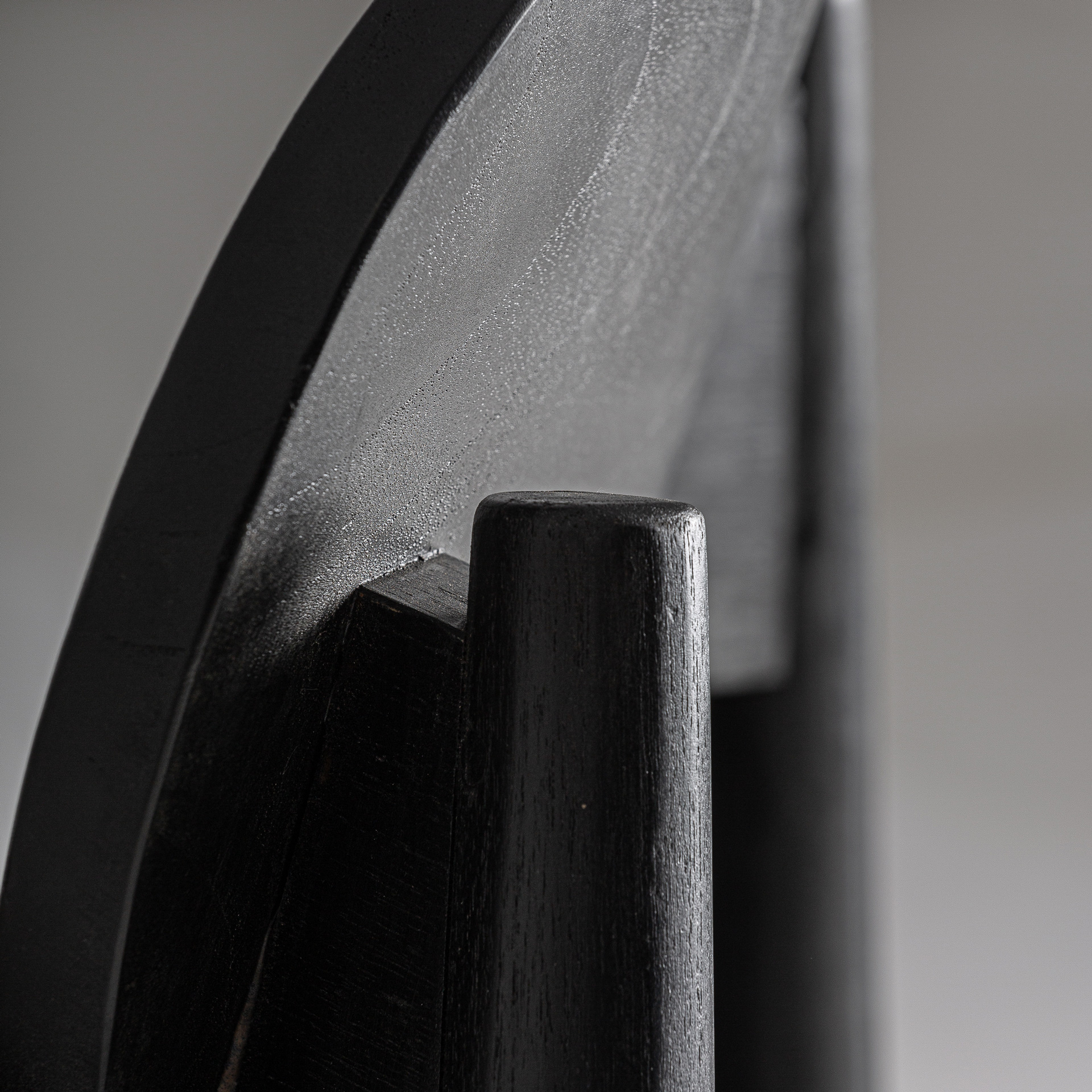 COMPOSICIÓN MATERIAL Madera de teka en color negro, combinado con piel en color blanco Fabricación artesanal. Entendemos las variaciones de tonalidad o ciertas imperfecciones (grietas, nudos, marcas) como un valor añadido que la convierten en pieza única.