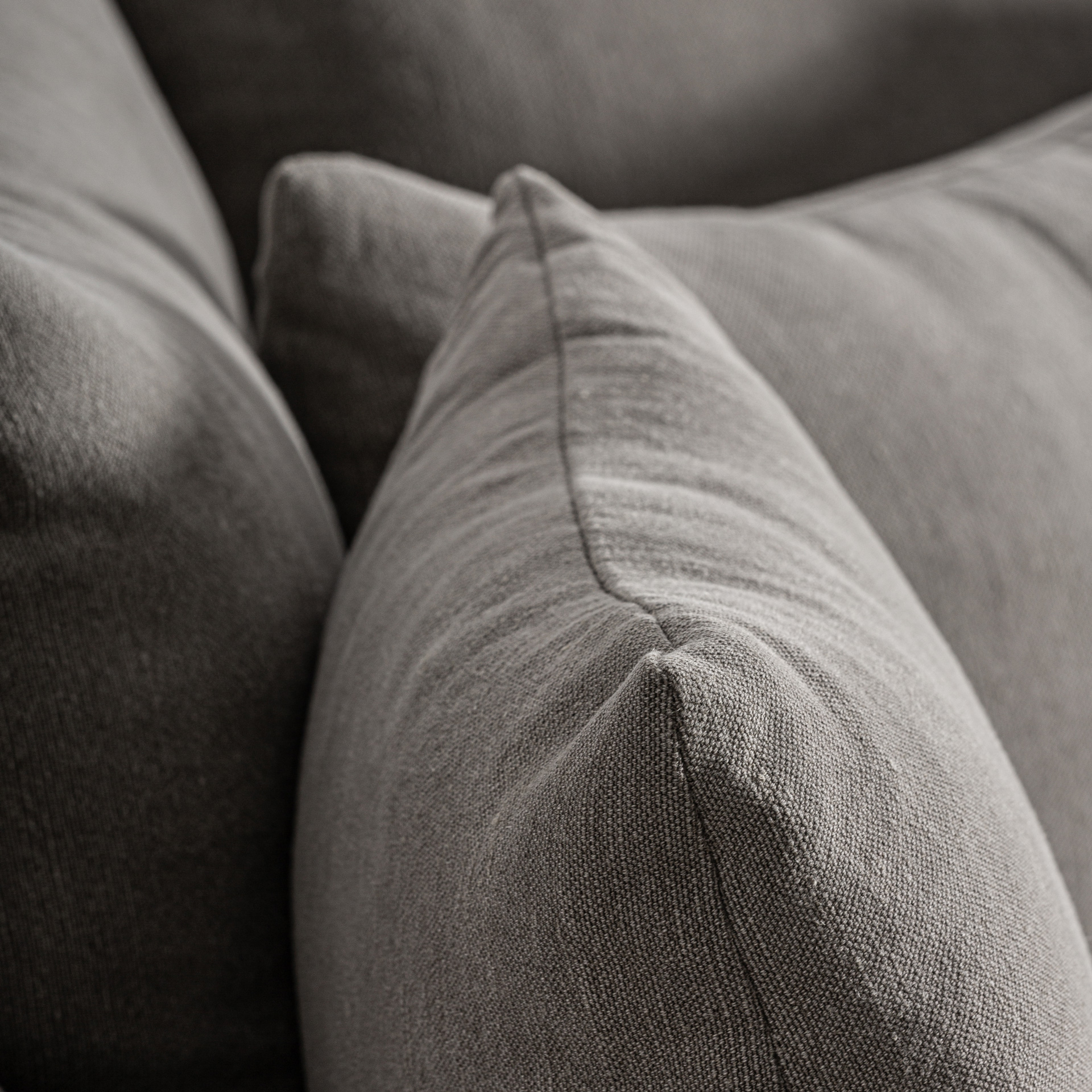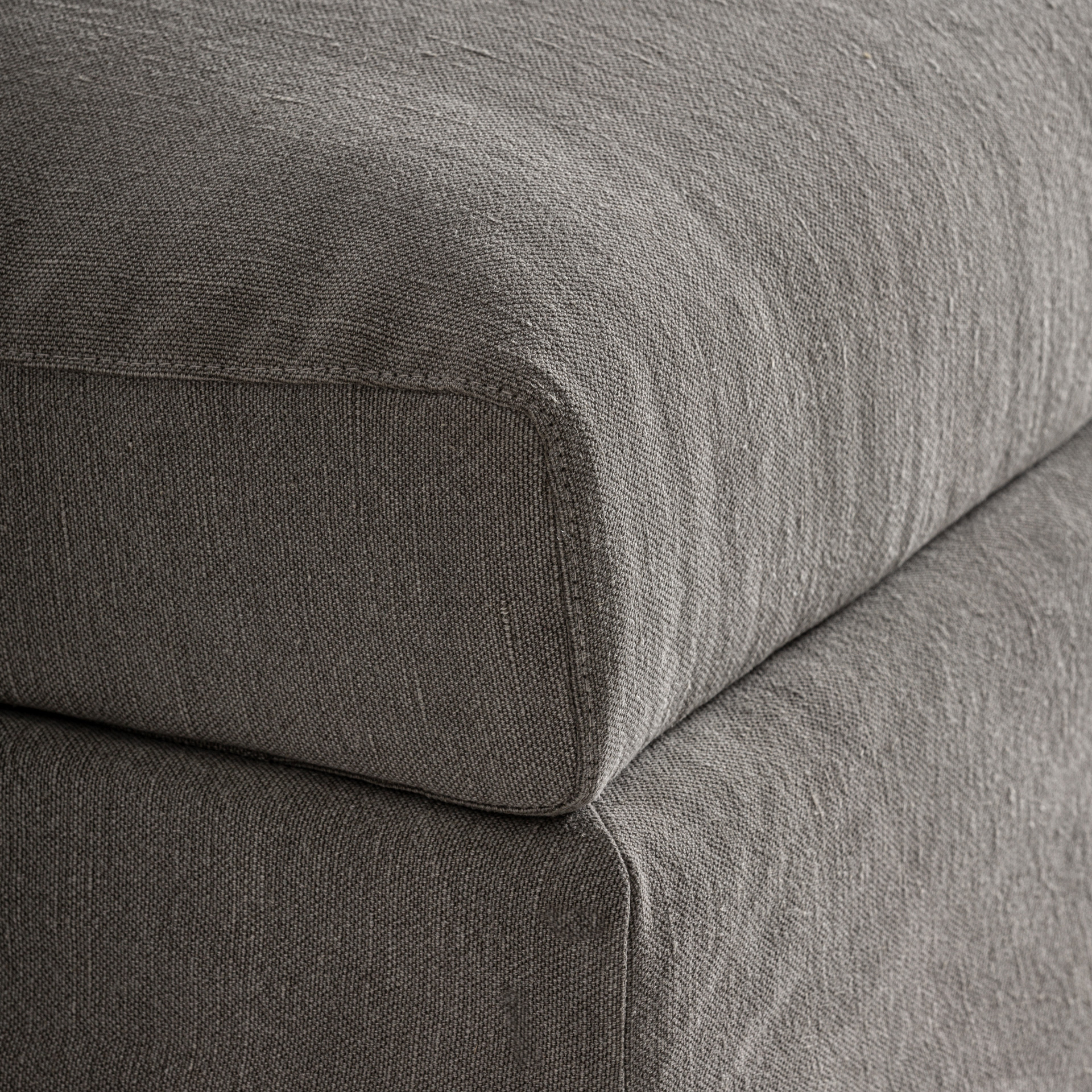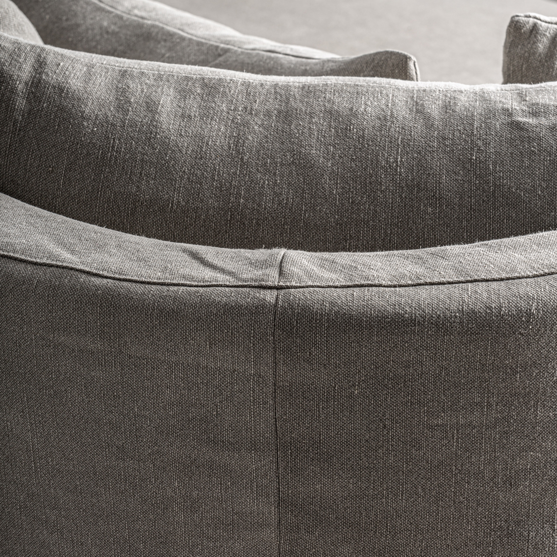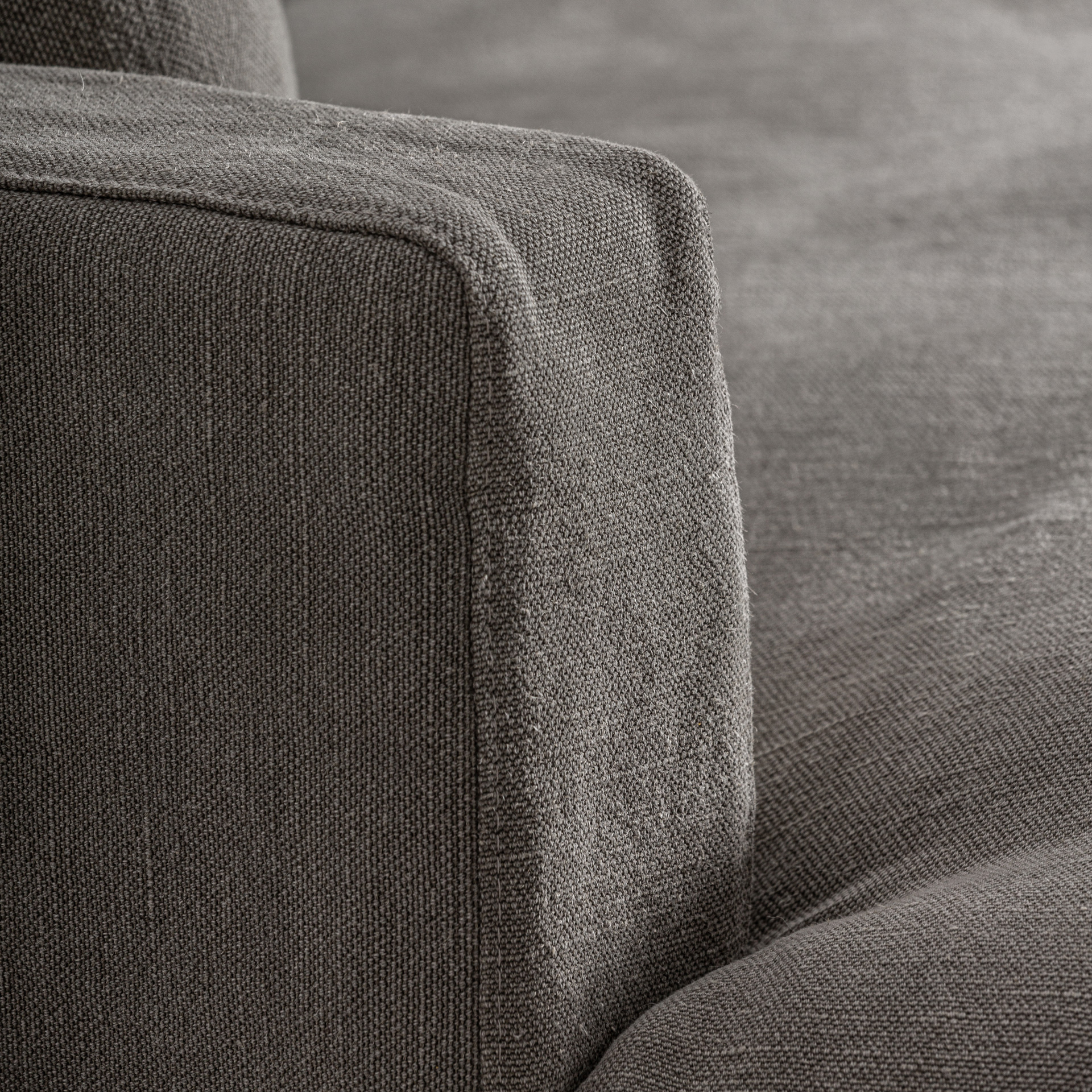 Sofá Corbun de estilo clásico, fabricado en lino en color topo, combinado con algodón y espuma. Producto desmontable, desenfundable.
