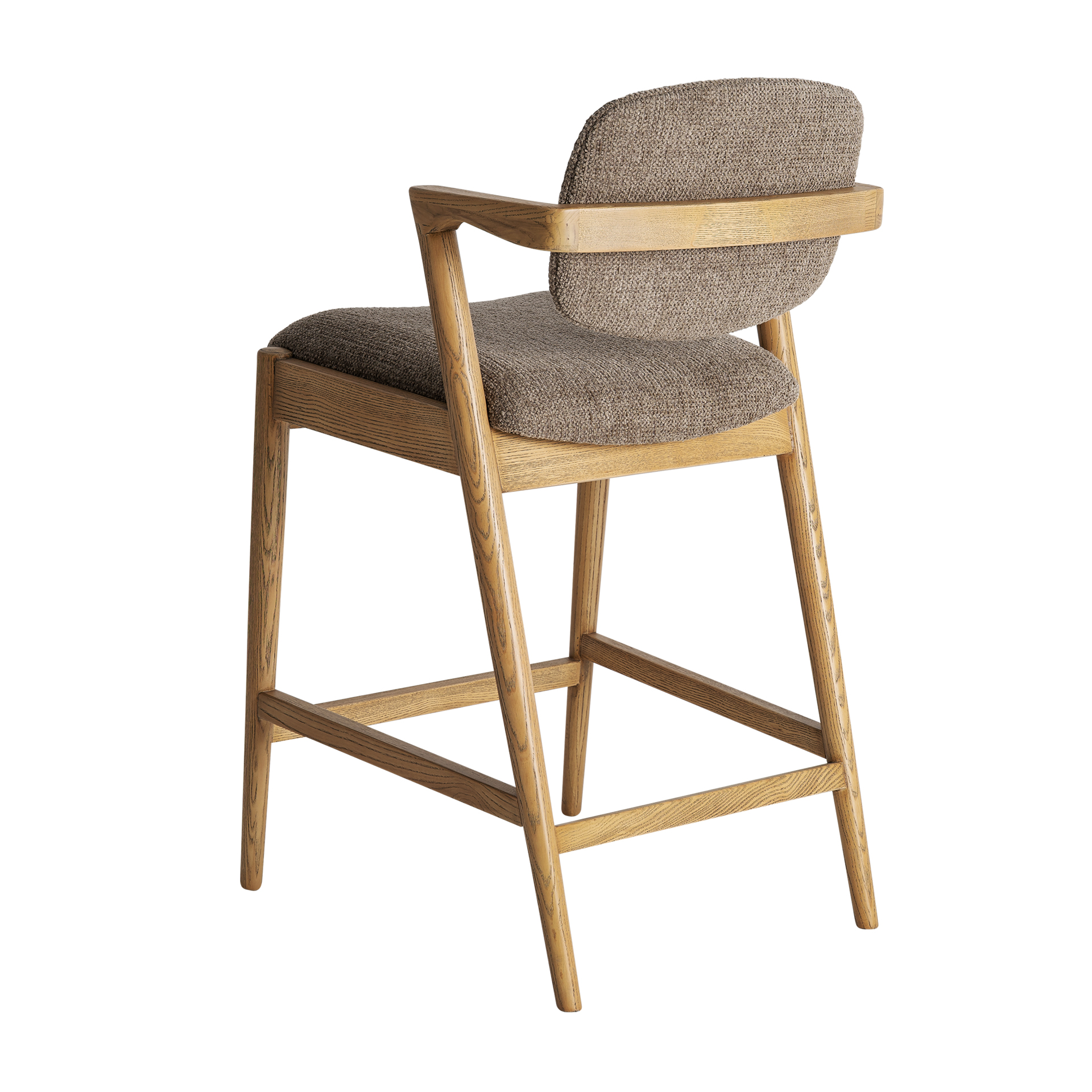Taburete Namur de estilo contemporáneo, fabricado en madera de fresno en color marrón, combinado con poliéster en color marrón.