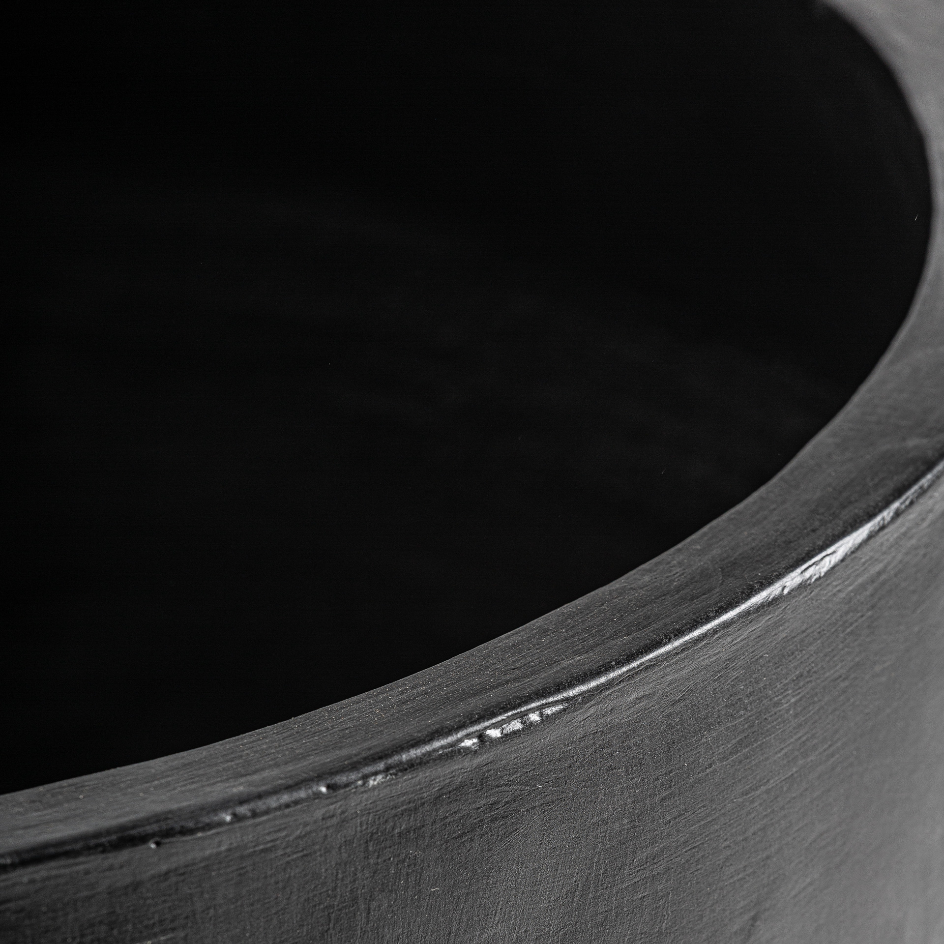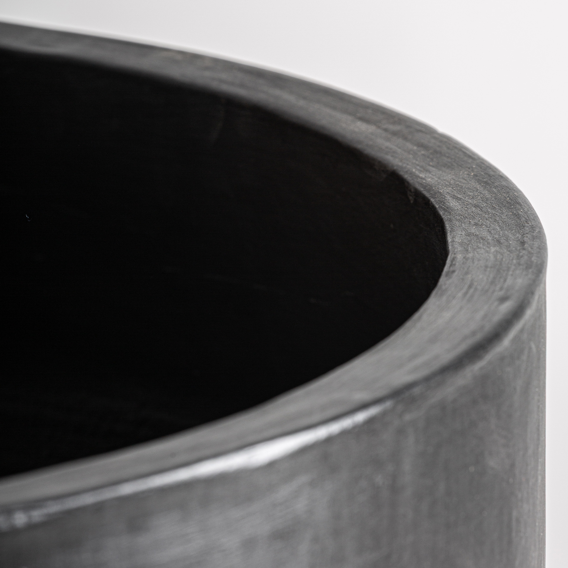 Tinaja Michoux de estilo contemporáneo, fabricado en hormigón armado en color negro.